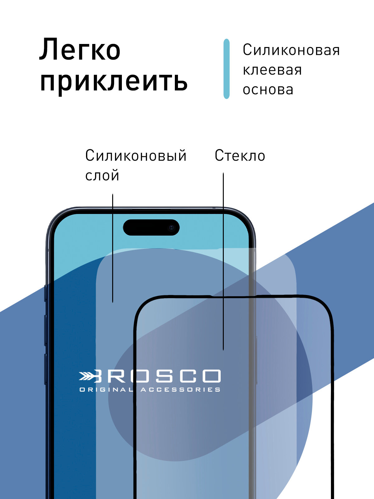 Купить Защитное стекло Rosco на Apple iPhone 15 Pro Max (Айфон 15 Про Макс), глянцевое с чёрной рамкой, 1 шт