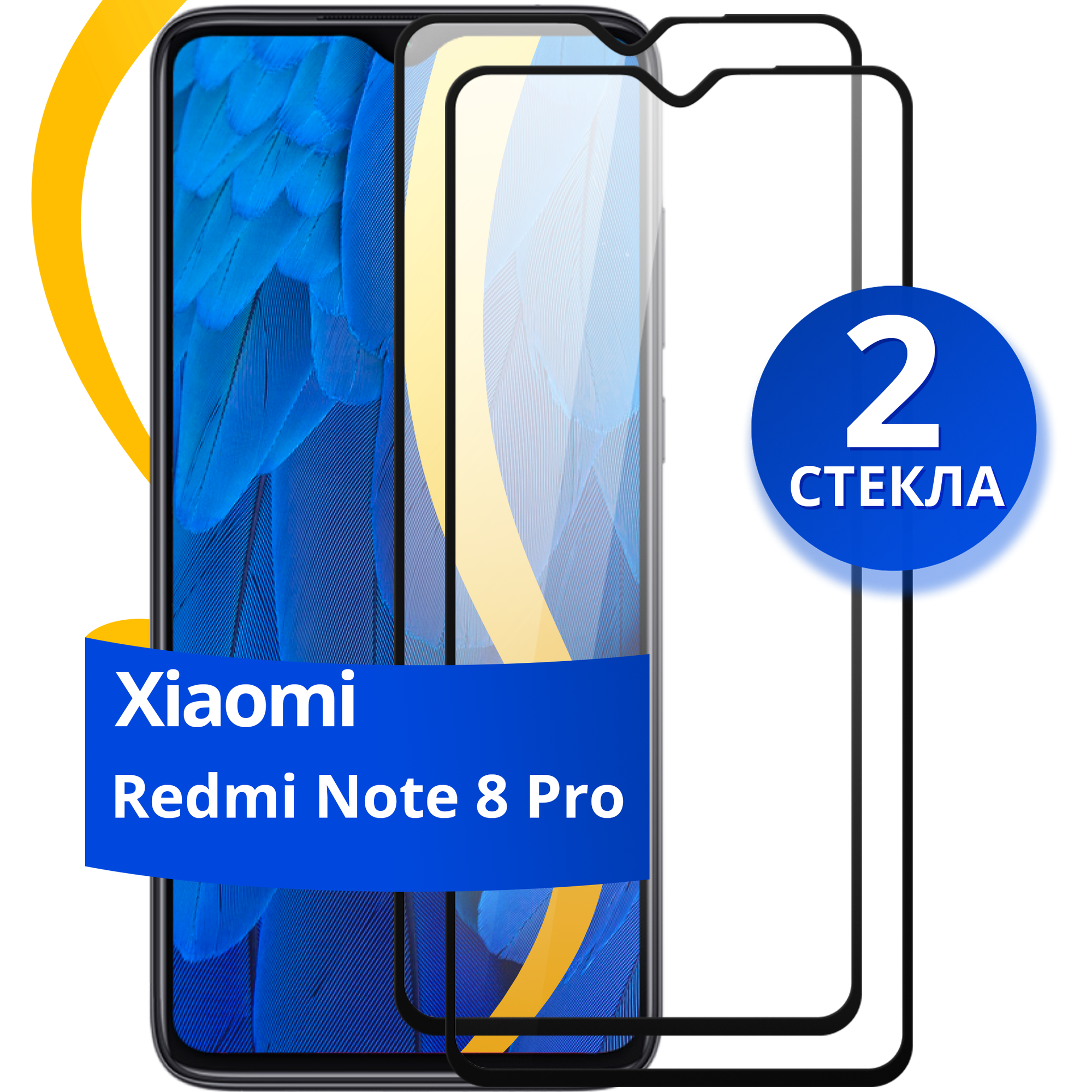 Комплект из 2 шт. Защитное стекло для Xiaomi Redmi Note 8 Pro, Redmi 9 / Противоударное стекло на Сяоми Редми Нот 8 Про, Редми 9