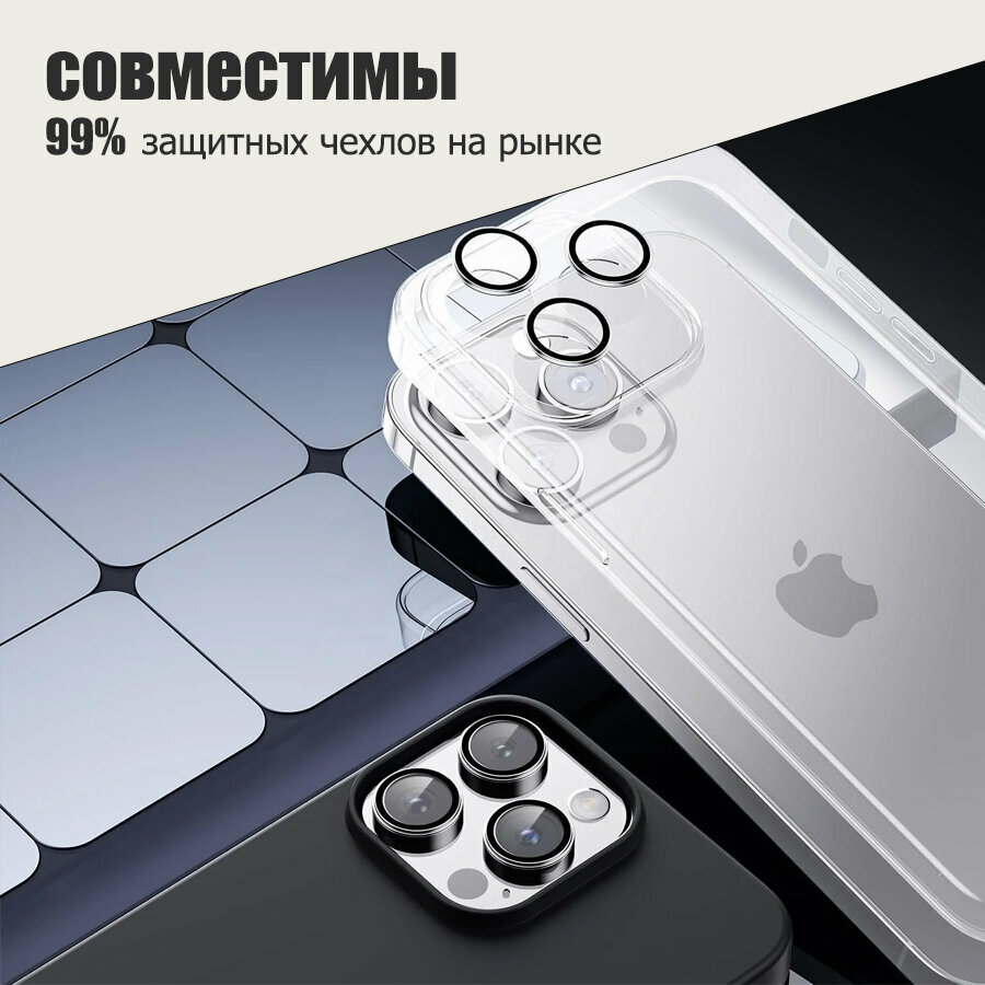 Защитное стекло на камеру iPhone 16 Pro/16 Pro Max, Черный
