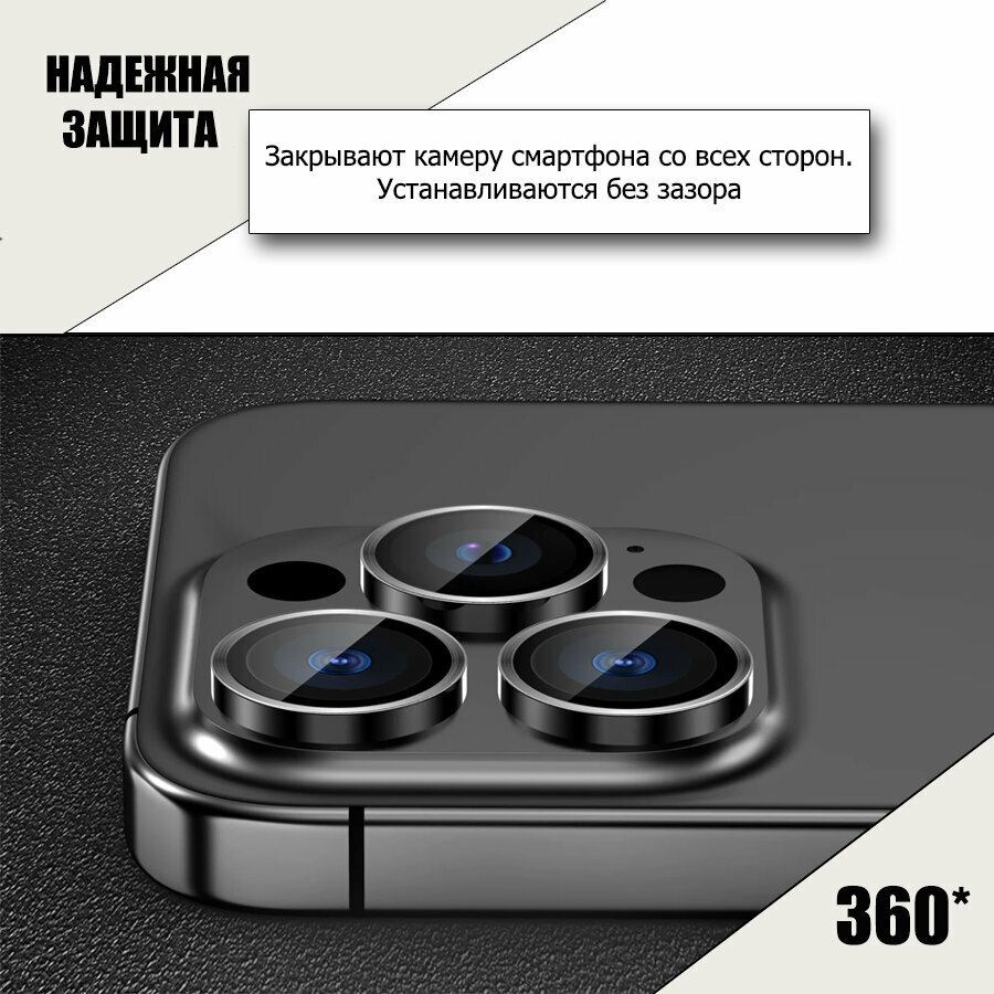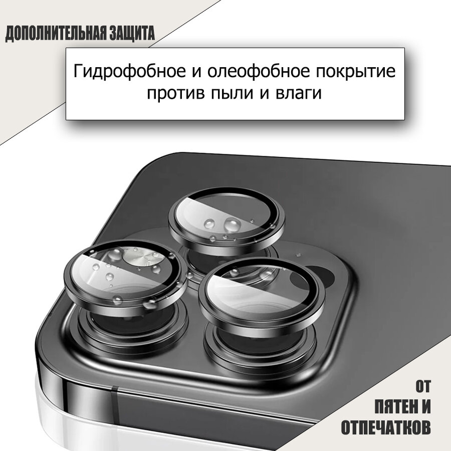 Защитное стекло линзы на камеру iPhone 15 Pro Max / 15 Pro, Черный Титан