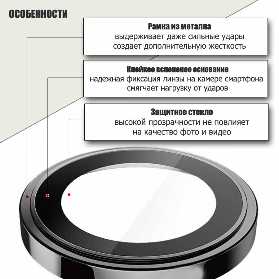 Защитное стекло линзы на камеру iPhone 15 Pro/15 Pro Max, Белый Титан