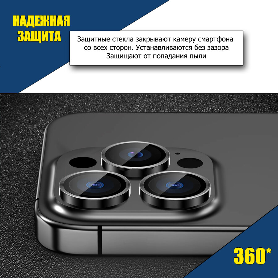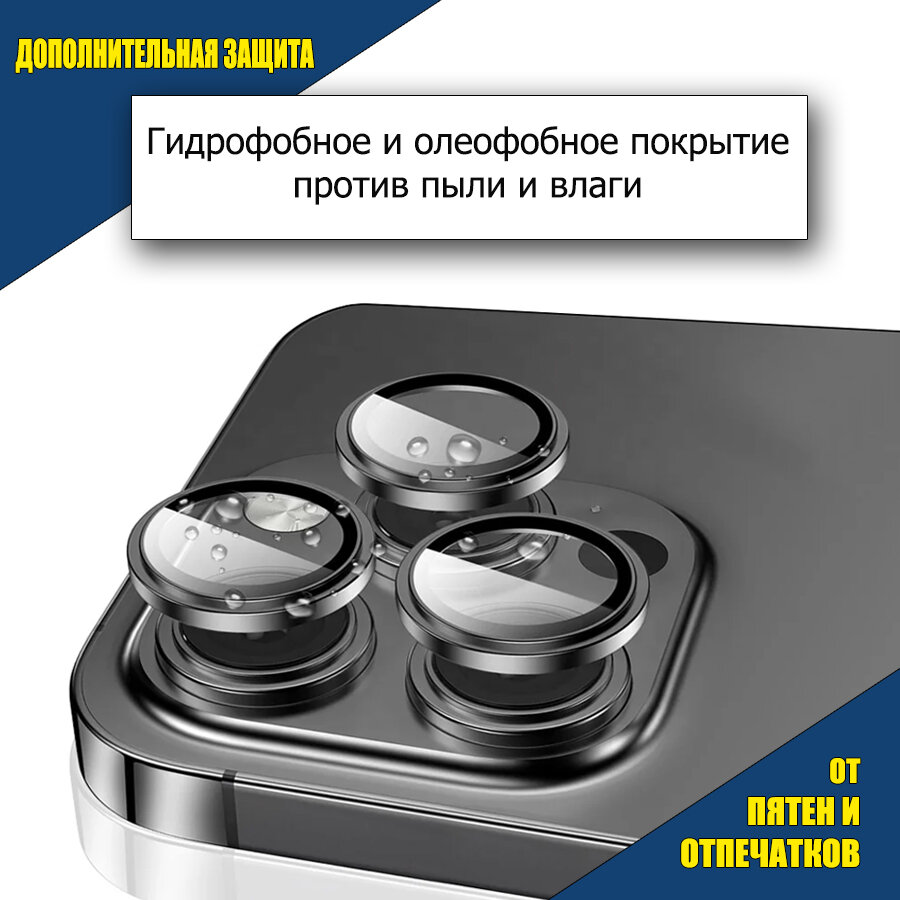 Купить Защитное стекло линзы на камеру iPhone 15 Pro Max / 15 Pro, Черный Титан