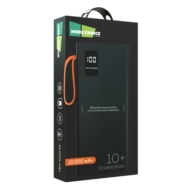 PURE Внешний аккумулятор 10000mAh 2USB 2.1A More choice PB22-10 с кабелем Black интересное: