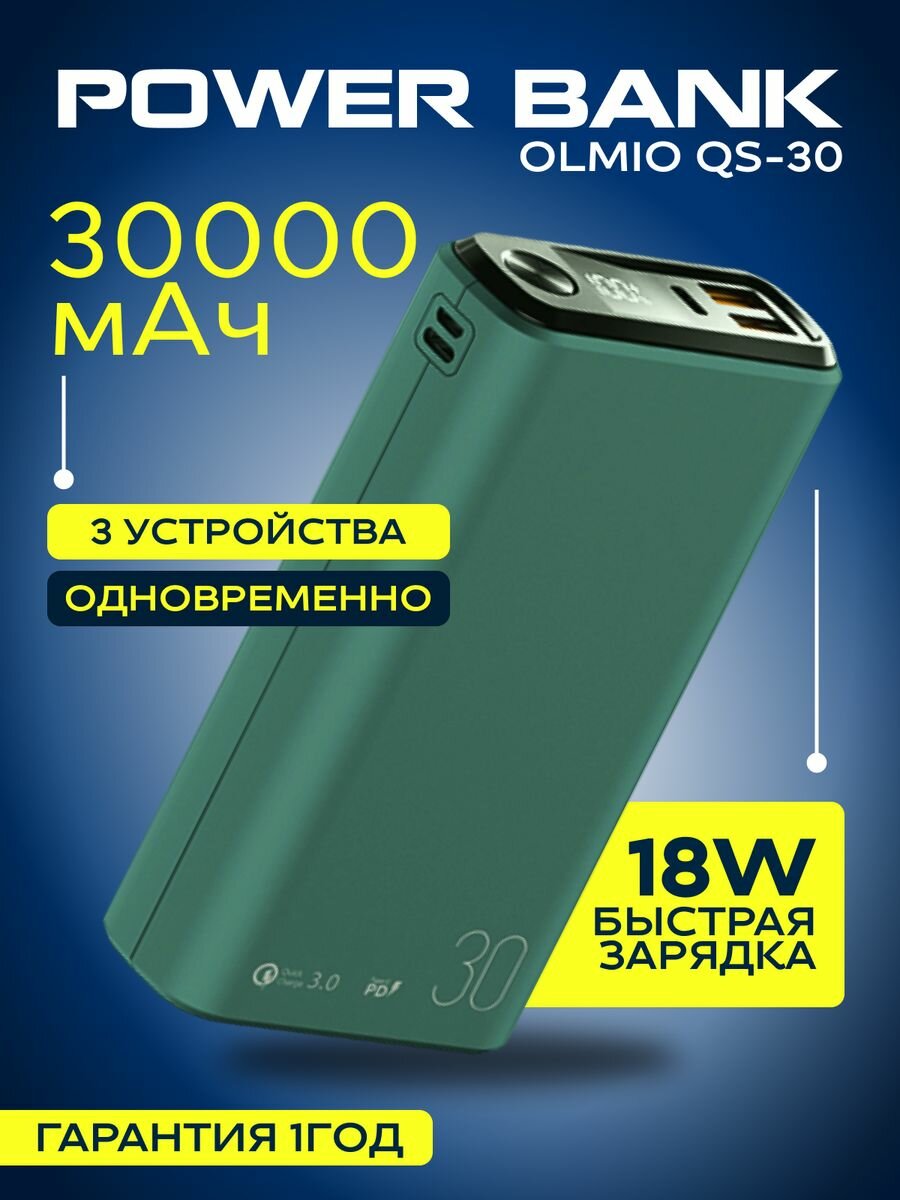 Внешний аккумулятор OLMIO QS-30, 30000 мАч, синий
