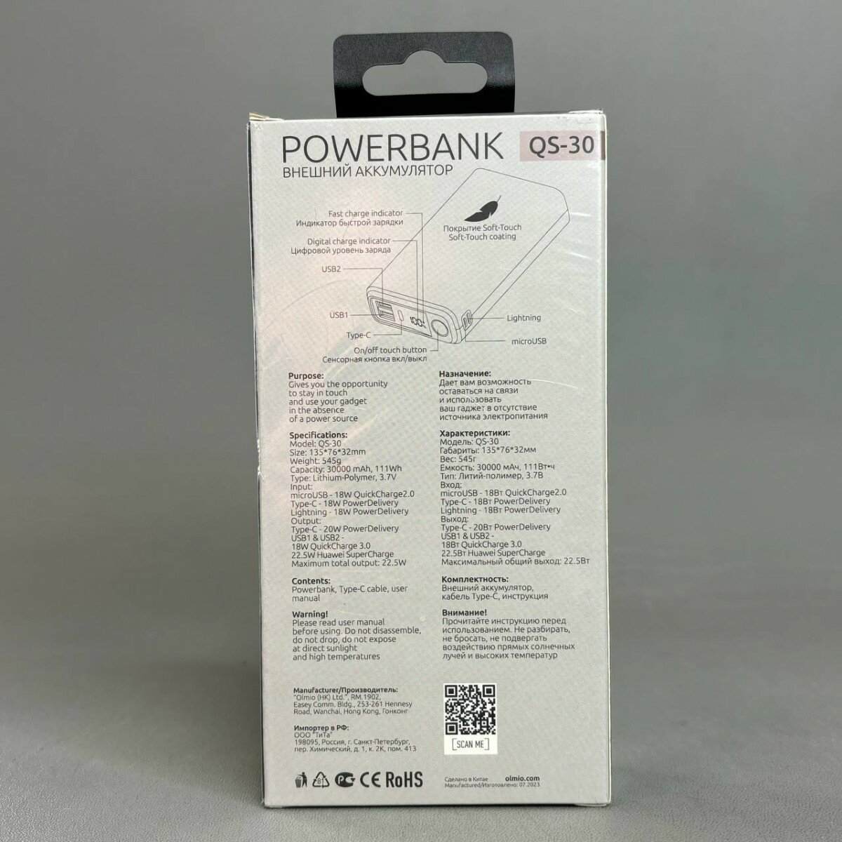 Купить Внешний аккумулятор QS-30, 30000mAh, midnight, OLMIO