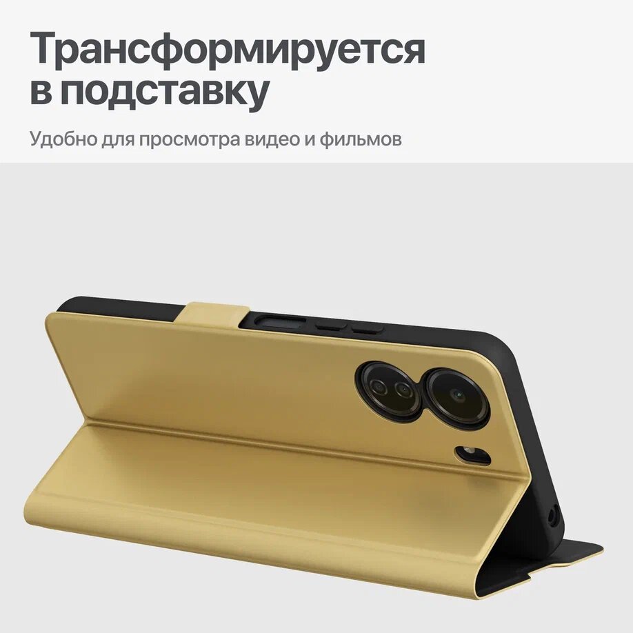 СохранитьЧехол книжка для Xiaomi Redmi 13C/POCO C65 / Редми 13С/Поко С65 из искусственной кожи, с карманом, золотой интересное: