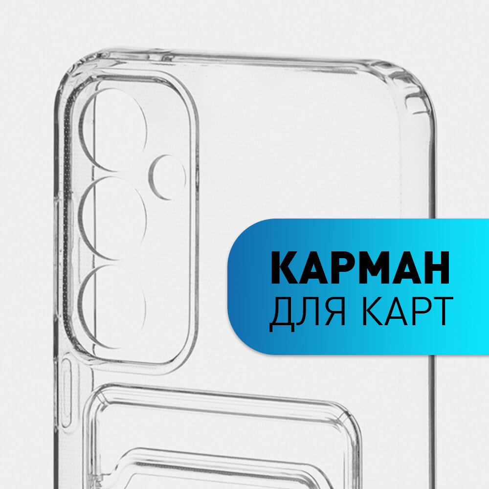Чехол с кармашком на Samsung Galaxy S23 FE (Самсунг Галакси С23 ФЕ) силиконовый, для карты, защита камер, прозрачный