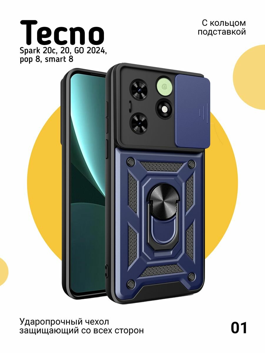 чехол на Tecno Spark 20C|20|Go 2024 противоударный, синий интересное: