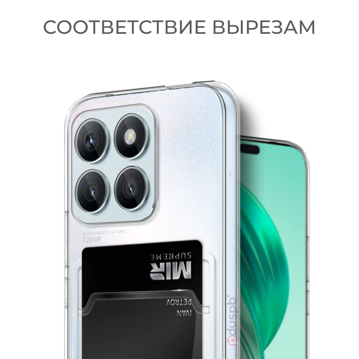 Прозрачный чехол №05 для Honor x8b / защитный клип-кейс с карманом для карт и противоударными углами на Хонор Икс 8б