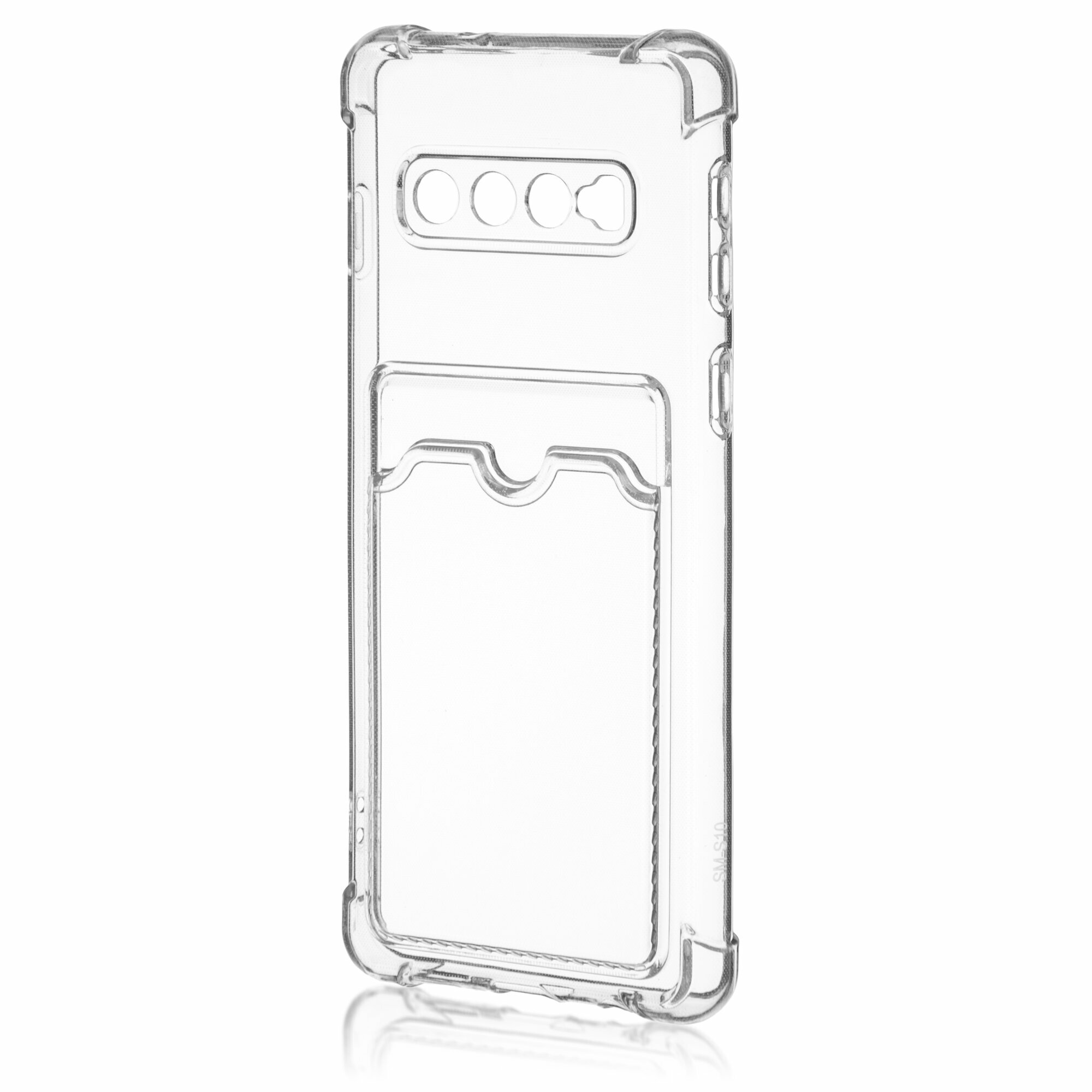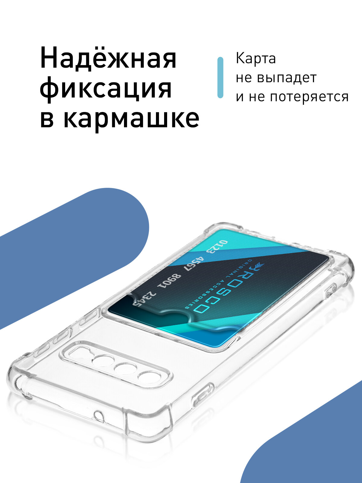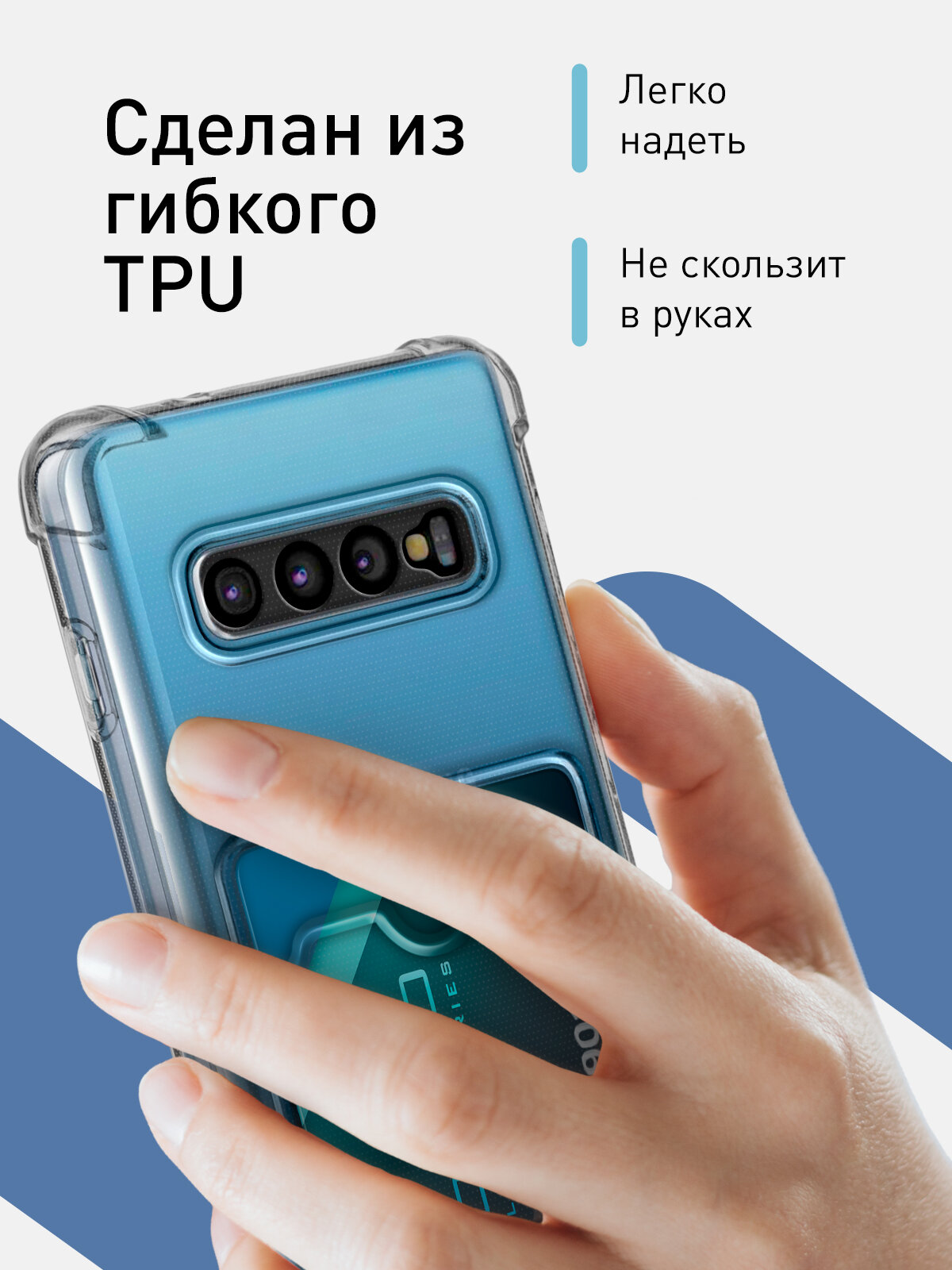 Купить Чехол с кармашком для Samsung Galaxy S10 (Самсунг С10, С10) противоударный, чехол для карт, силиконовый, усиленные углы, кардхолдер, прозрачный чехол