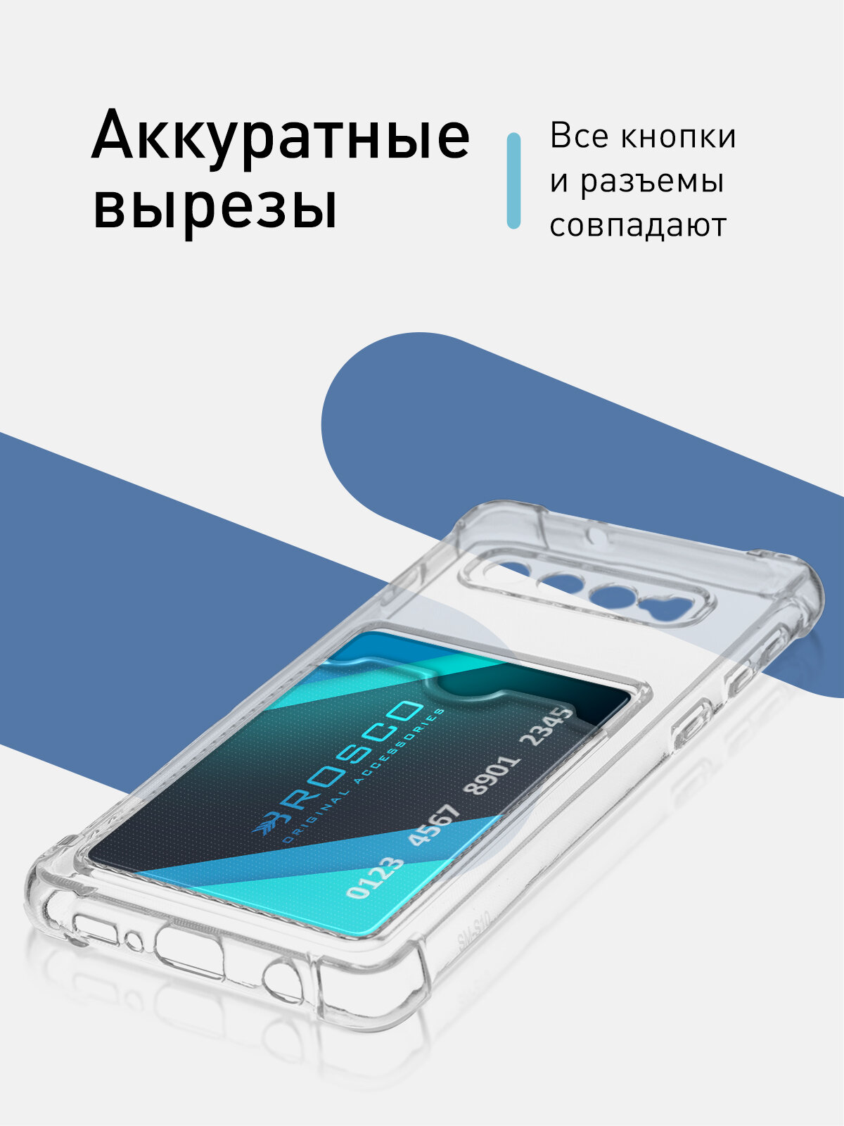 Противоударный чехол с кармашком Rosco на Samsung Galaxy S10 (Самсунг Галакси С10), силиконовый, прозрачный