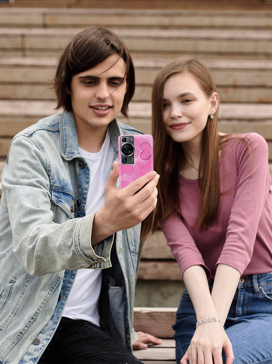 Купить Силиконовый чехол на Huawei P60, Хуавей П60 с принтом "Розовые сердечки"