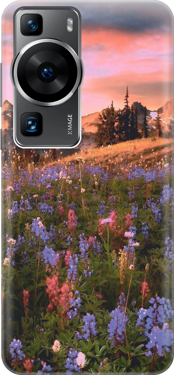 Купить Силиконовый чехол на Huawei P60, Хуавей П60 с принтом "Цветочное поле и горы"