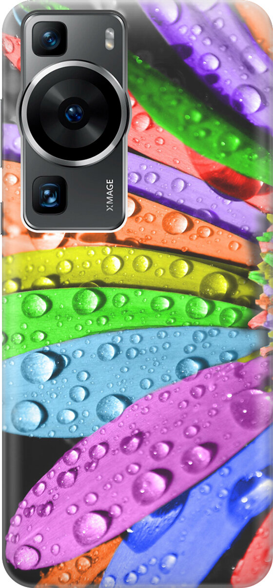 Купить Силиконовый чехол на Huawei P60, Хуавей П60 с принтом "Разноцветные листья в каплях"