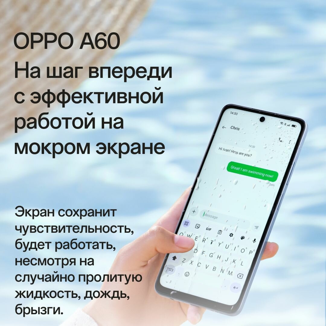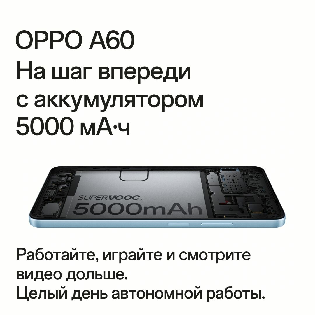 Смартфон OPPO A60 8/256 Гб, цвет голубой, IP54 противоударный корпус