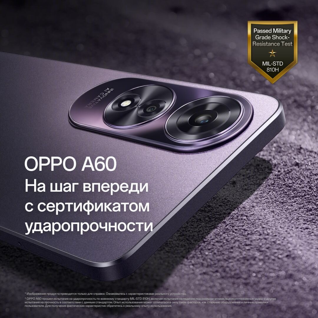 Смартфон OPPO A60 8/256 Гб, цвет фиолетовый, IP54 противоударный корпус