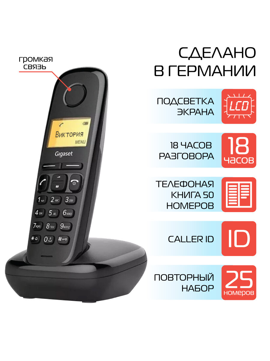 Радиотелефон DECT Gigaset A270 черный интересное: