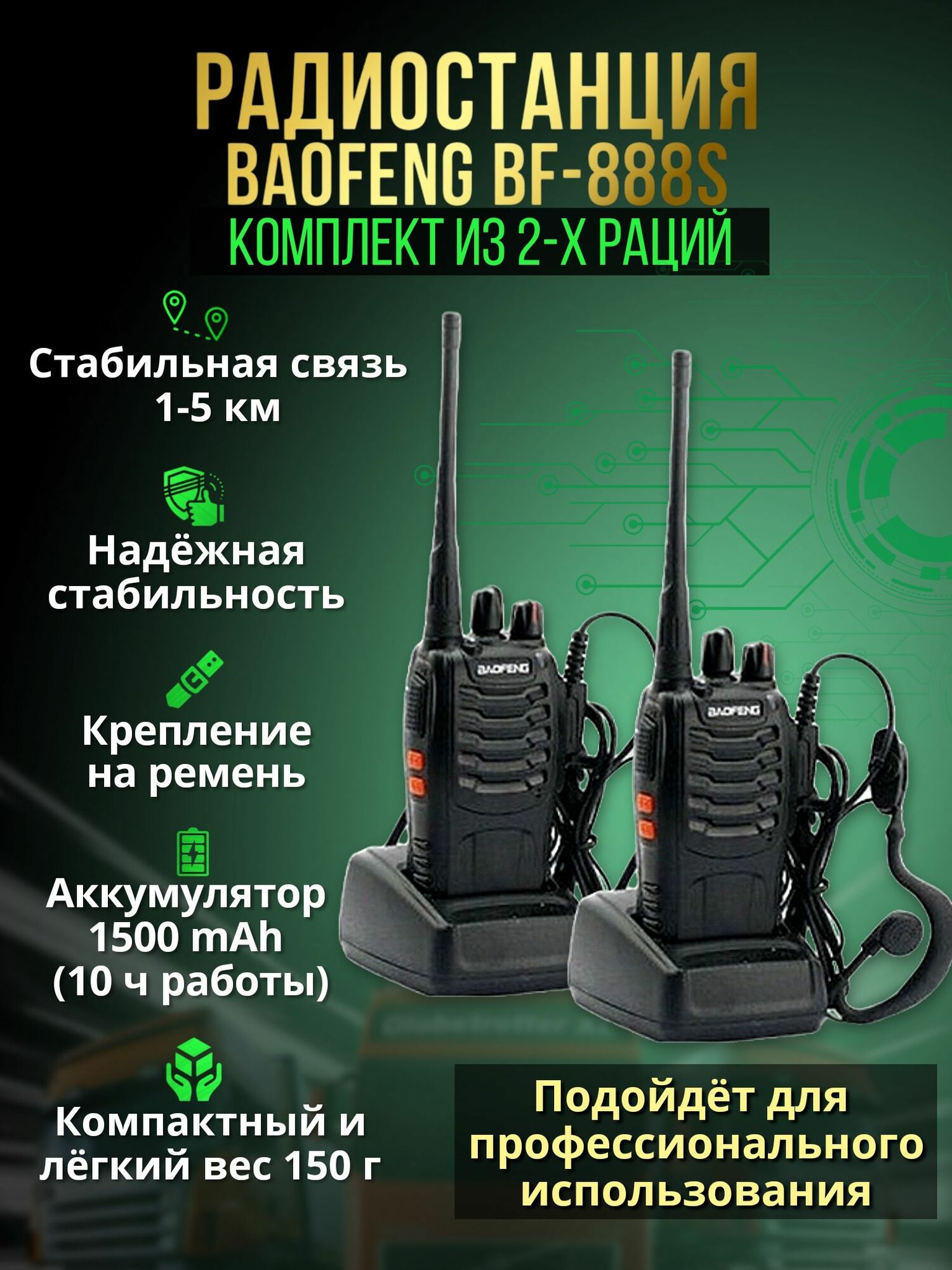 Комплект раций Baofeng BF-888S с гарнитурой / Набор радиостанций интересное: