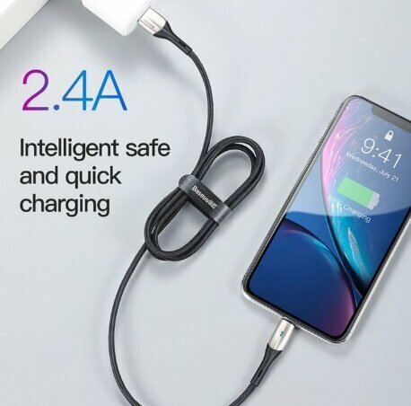 Кабель для USB BASEUS Horizontal, USB - Lightning, 1.5А, 2 м, черный, с индикатором