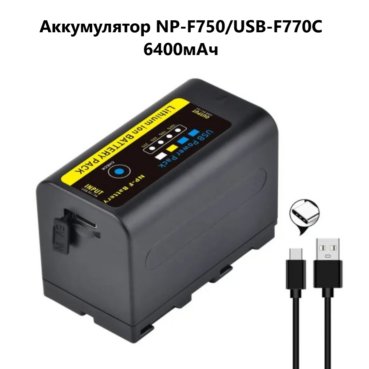 Аккумулятор ABC для видеокамер Sony NP-F750, светодиодных осветителей, Power Bank USB-F770C / 6400мАч интересное:
