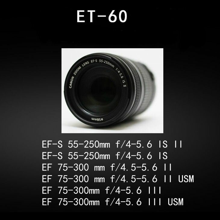 Ниже Вы можете прочитать отзывы на Бленда ET-60II для объектива Canon EF 55-250mm, 75-300mm, ознакомится с подробными характеристиками, посмотреть интересные обзоры и фотографии на Бленда ET-60II для объектива Canon EF 55-250mm, 75-300mm.
