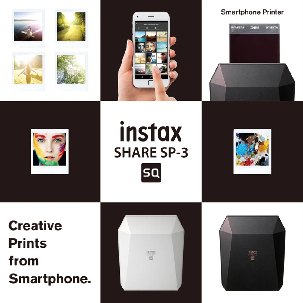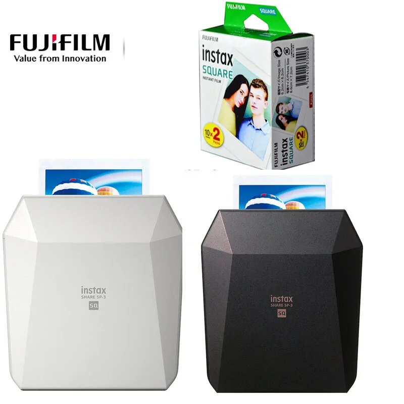 Купить Новый оригинальный Fujifilm Instax, квадратный фотопринтер, мгновенный принтер для смартфонов, белый/черный для instax, квадратные пленки