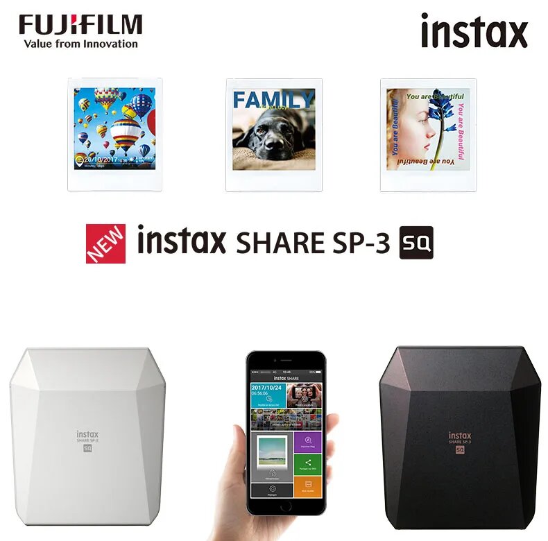 Новый оригинальный Fujifilm Instax, квадратный фотопринтер, мгновенный принтер для смартфонов, белый/черный для instax, квадратные пленки интересное: