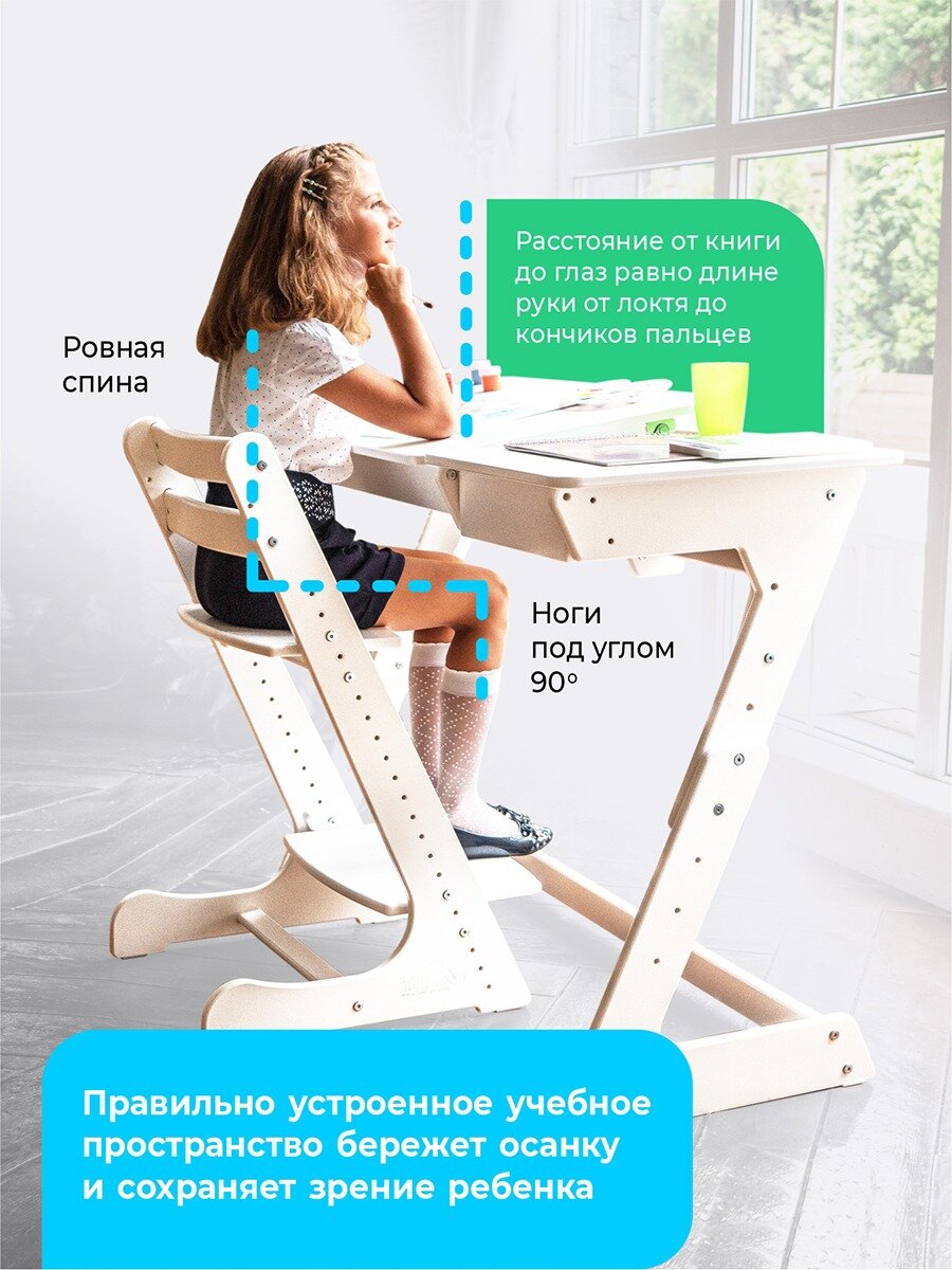 Парта для школьника растущая Конек Горбунек Макси, слоновая кость