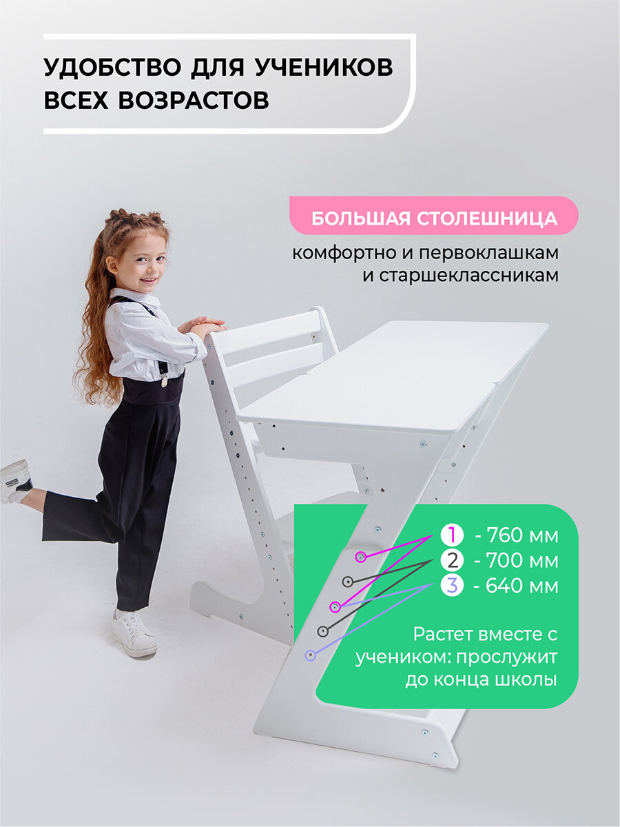 Парта для школьника растущая Конек Горбунек Макси, белая