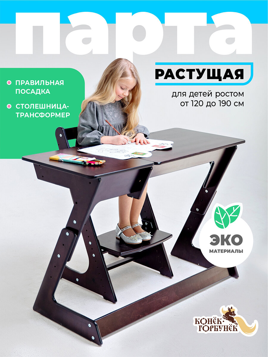 Парта для школьника растущая Конек Горбунек Макси, венге