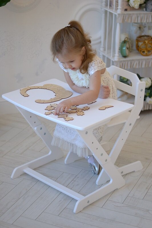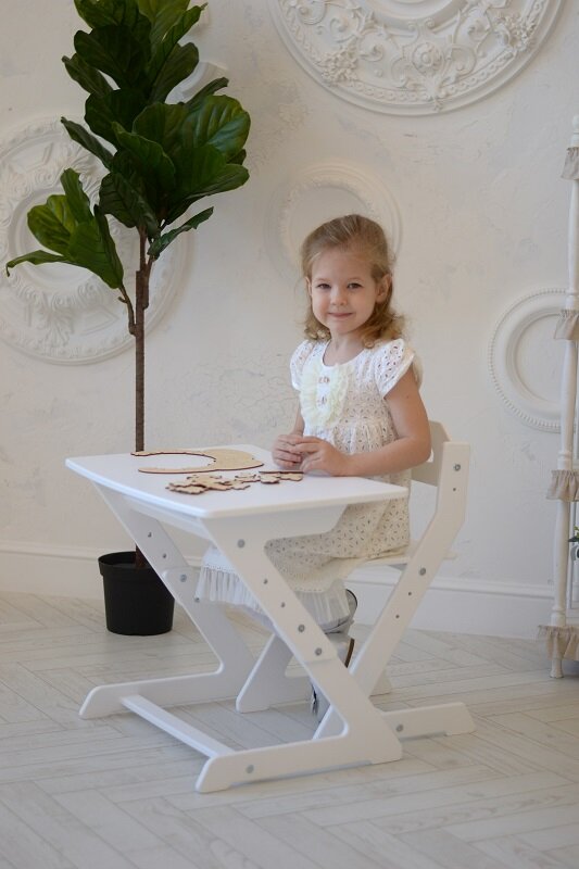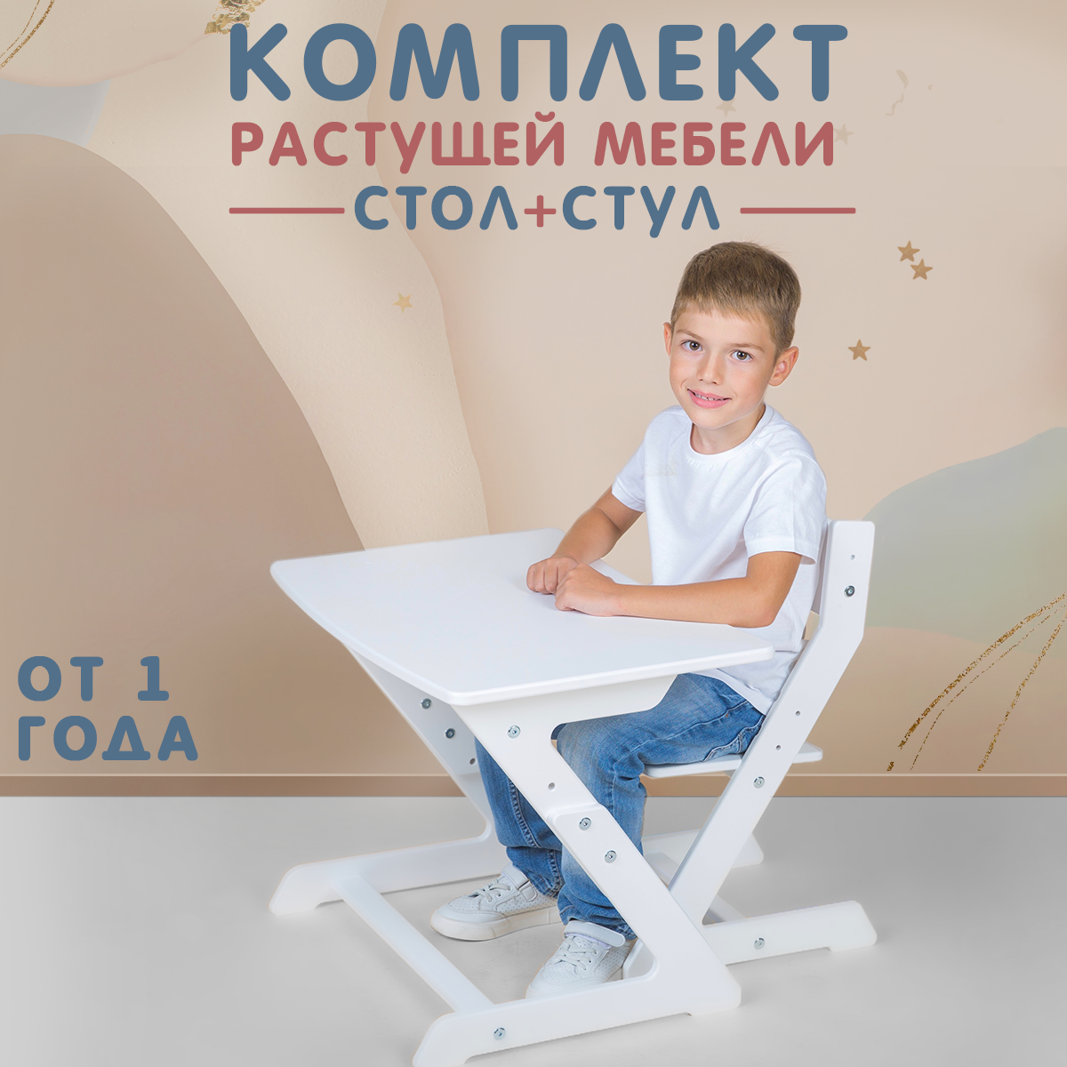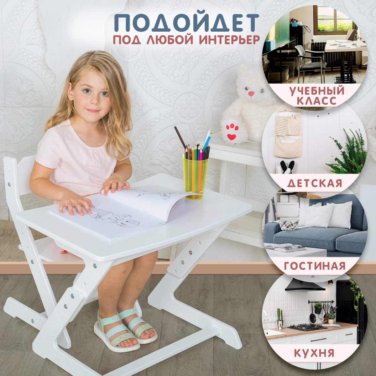 Детский стол и растущий стул, набор детской мебели, комплект стульчик и столик Конек Горбунек, цвет Белый интересное: