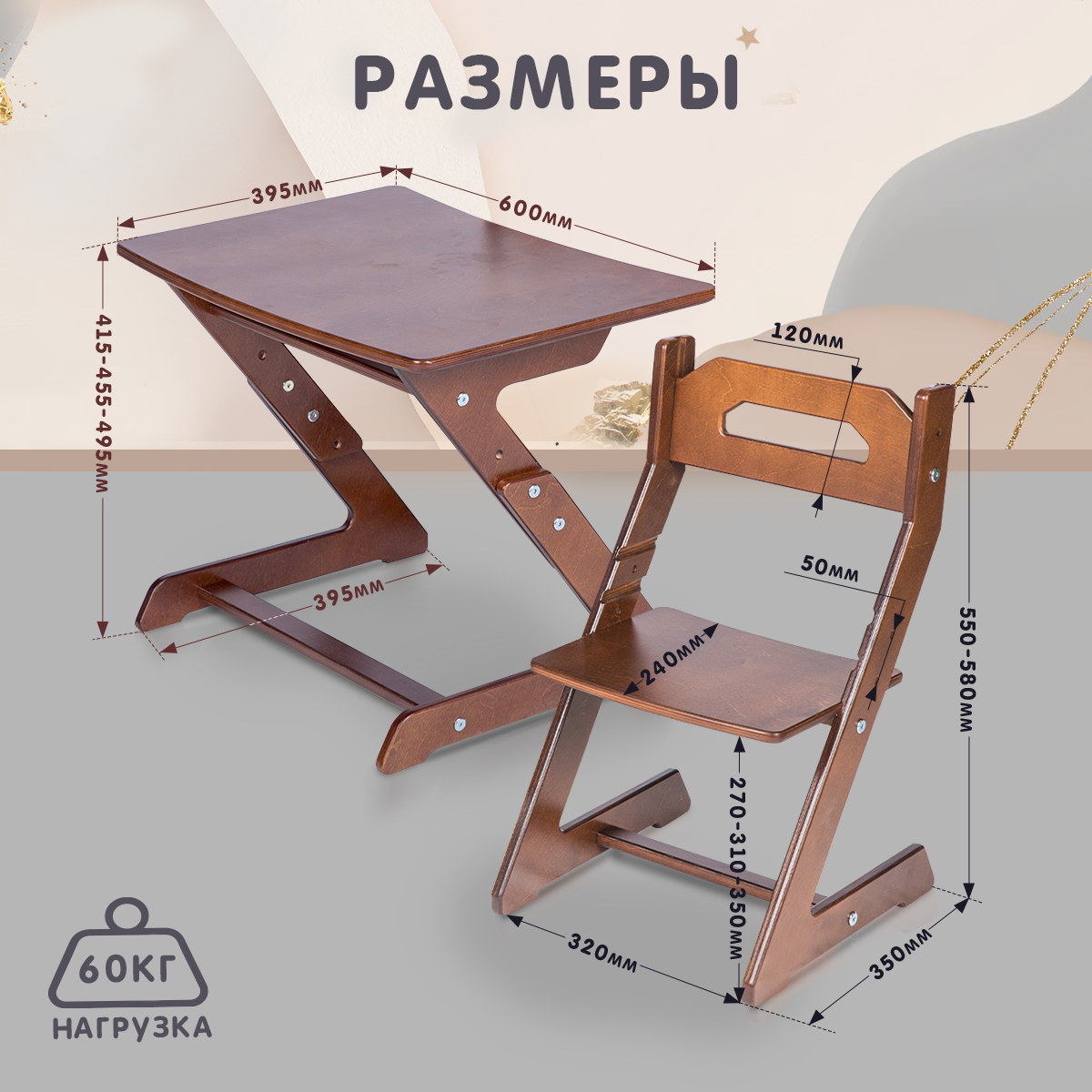 Детский растущий стул и стол, комплект мебели для детей, набор стульчик и столик, цвет Орех интересное: