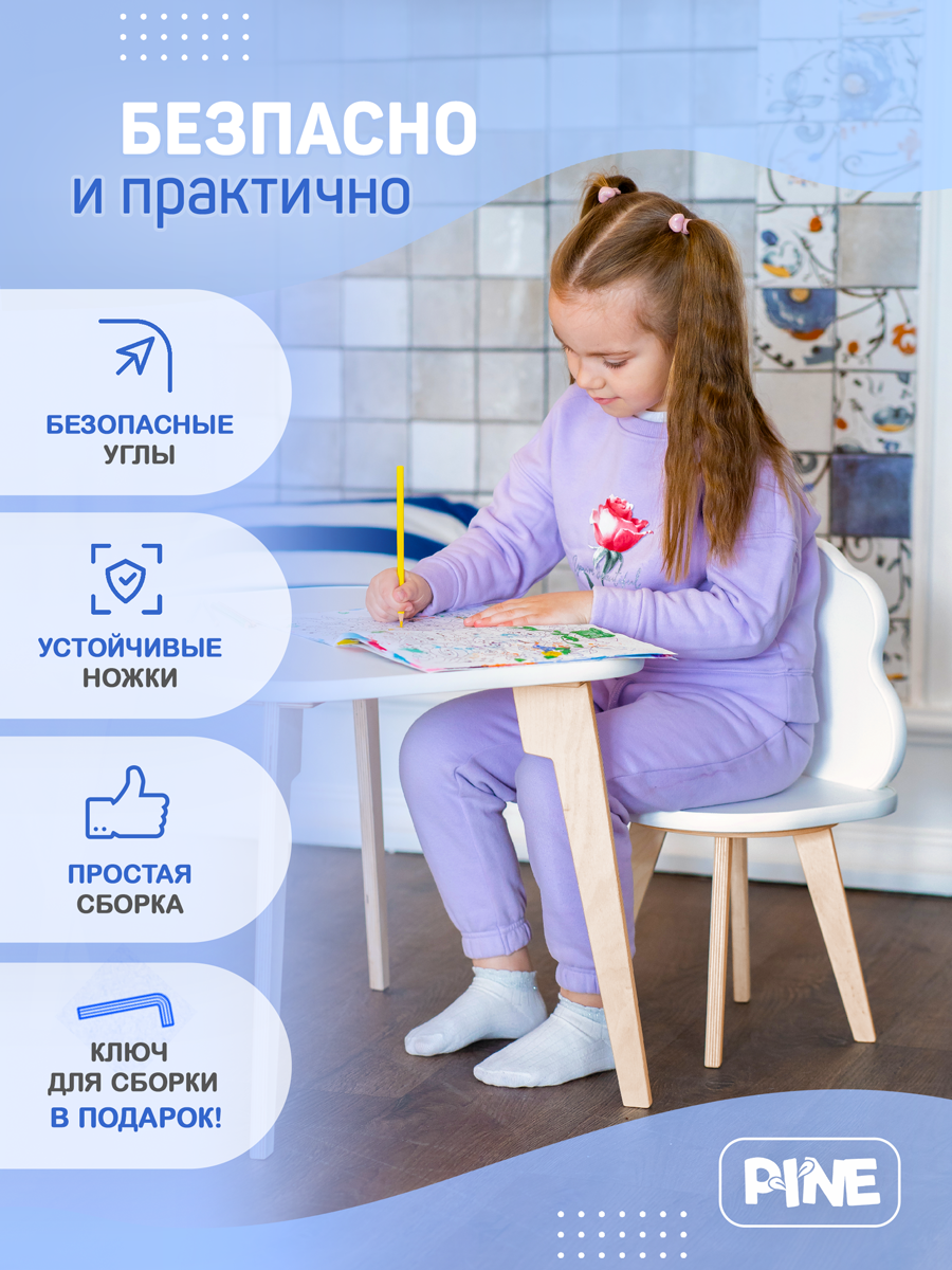 Детский стол и стул комплект Прямоугольный + "Облачко" PINE Kids