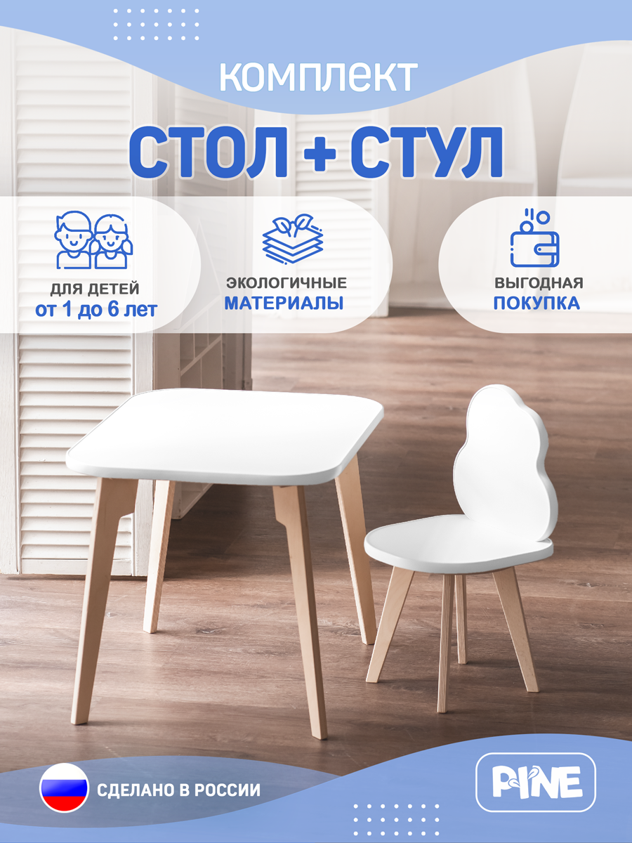 Купить Детский стол и стул комплект Прямоугольный + "Облачко" PINE Kids