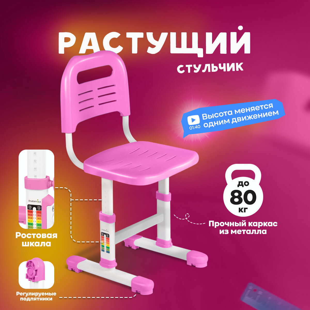 Комплект парта и стул Anatomica Avgusta клен/розовый интересное: