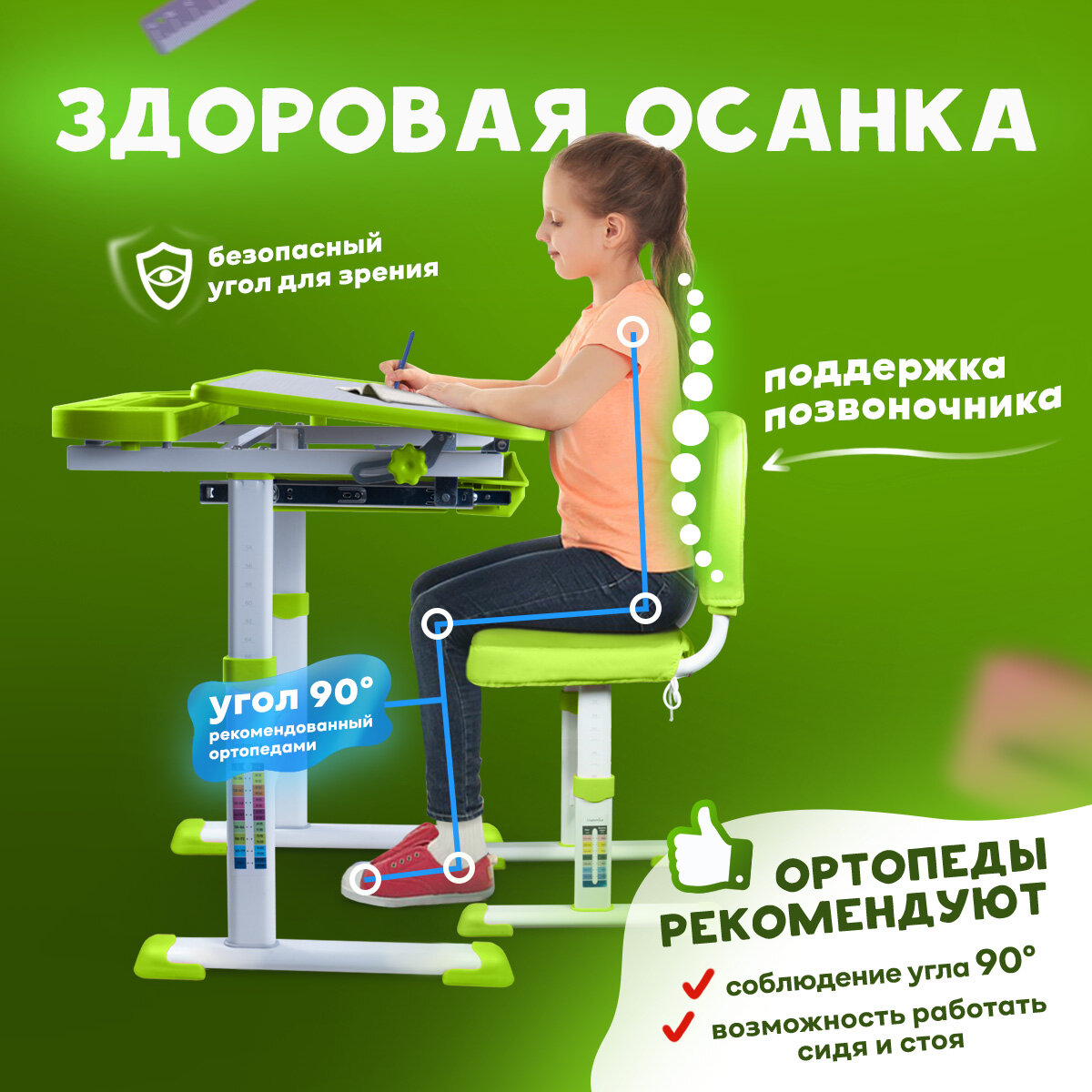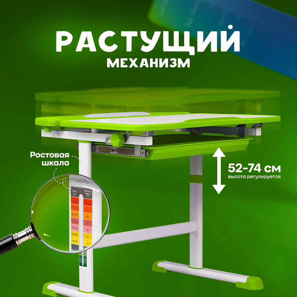 Комплект парта и стул Anatomica Avgusta белый/зеленый интересное: