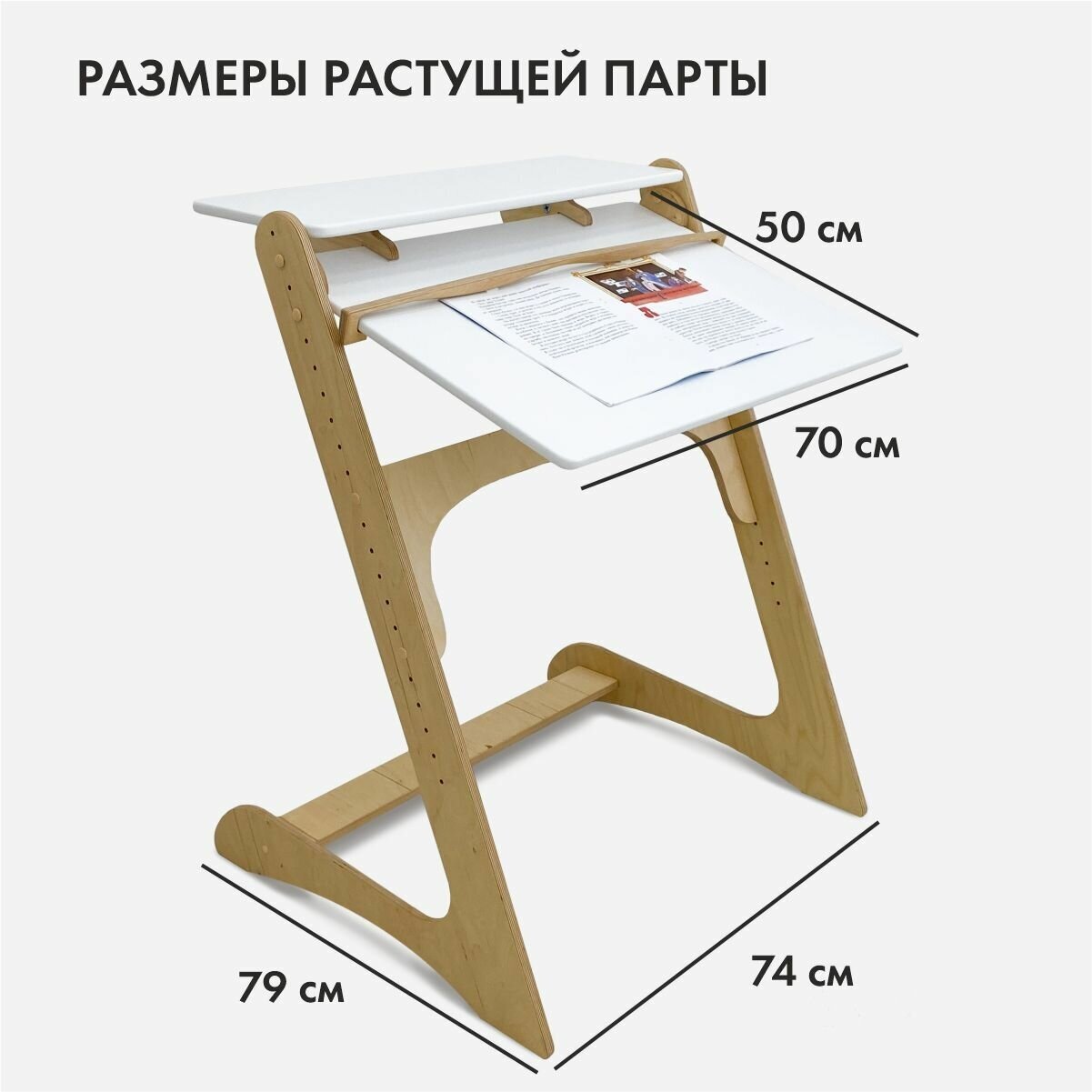 Растущая парта для школьника Rumbik Smart серая, детский деревянный письменный стол с регулировкой высоты