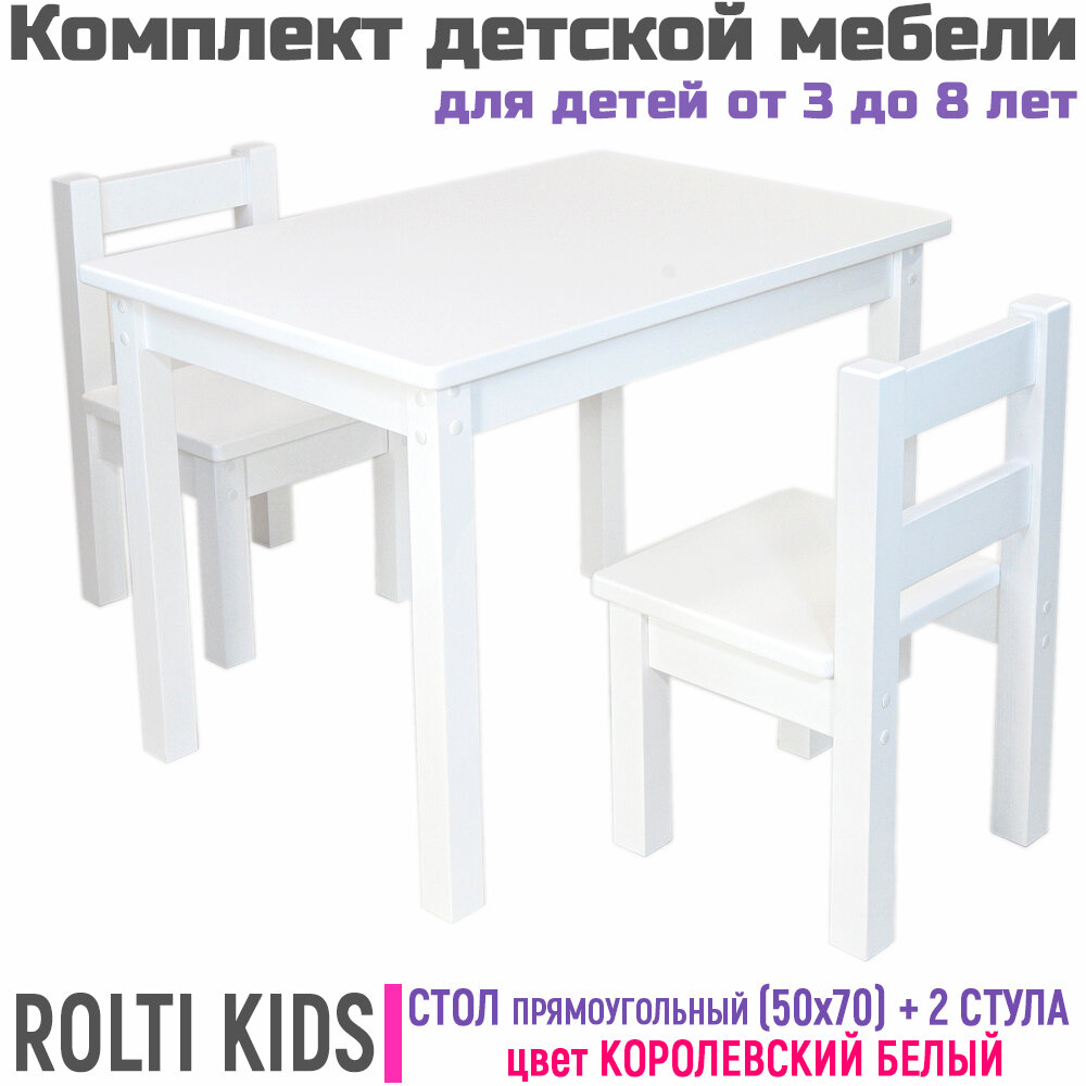 Купить Детский стол и два стула деревянный прямоугольный 70х50, Rolti Kids, белый