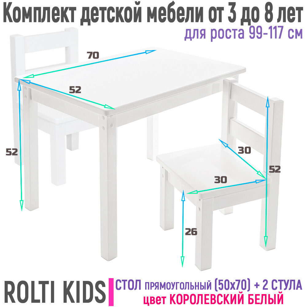 Детский стол и два стула деревянный прямоугольный 70х50, Rolti Kids, белый интересное: