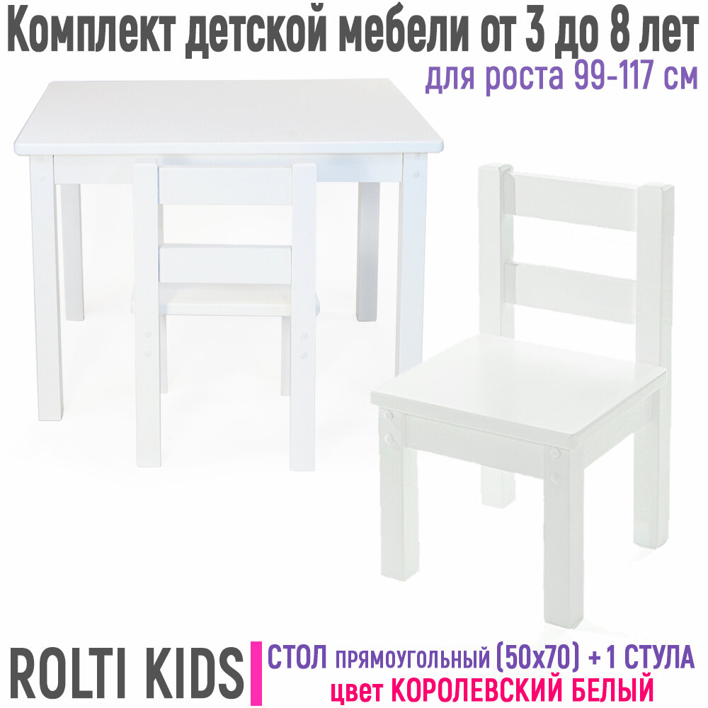 Детский прямоугольный стол и стул деревянный ROLTI kids, белый