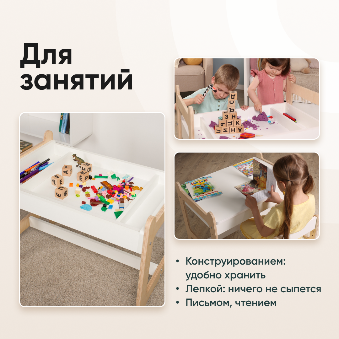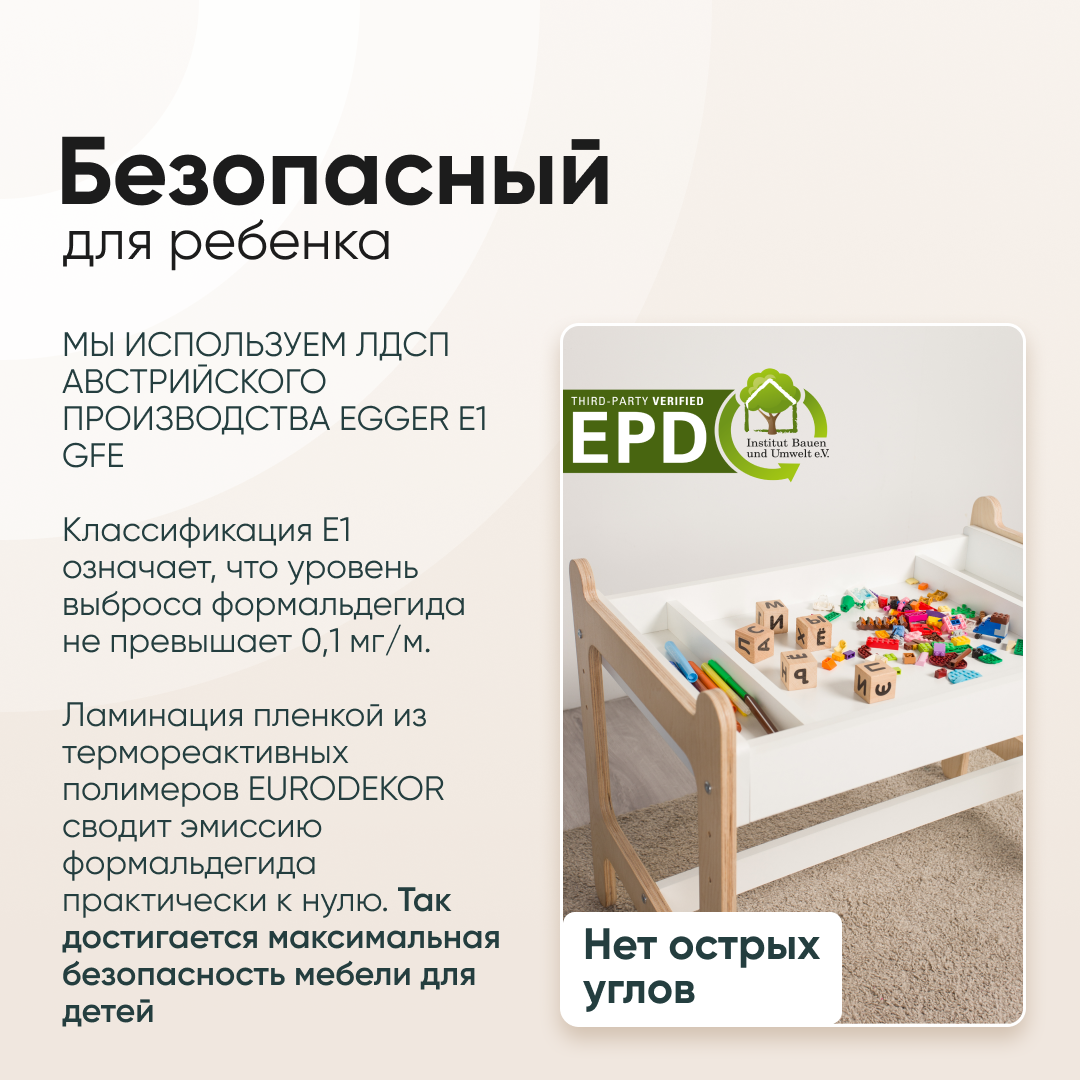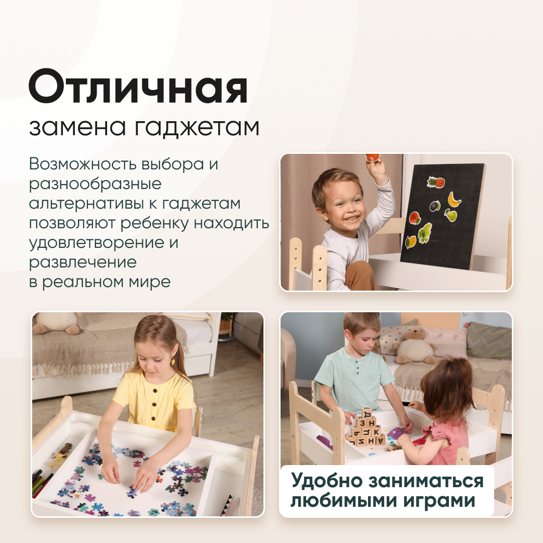 | Комплектация | Растущий стол, растущий стол, магнитно-грифельная доска, инструкция по сборке, вкладыш с контактами производителя |