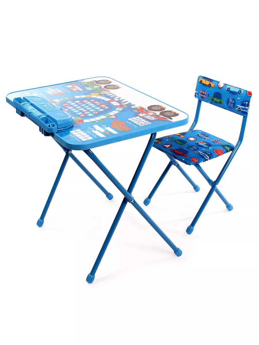 Детский комплект NIKA КП2/БГ Большие гонки стул+стол, от 3 до 7 лет, голубой