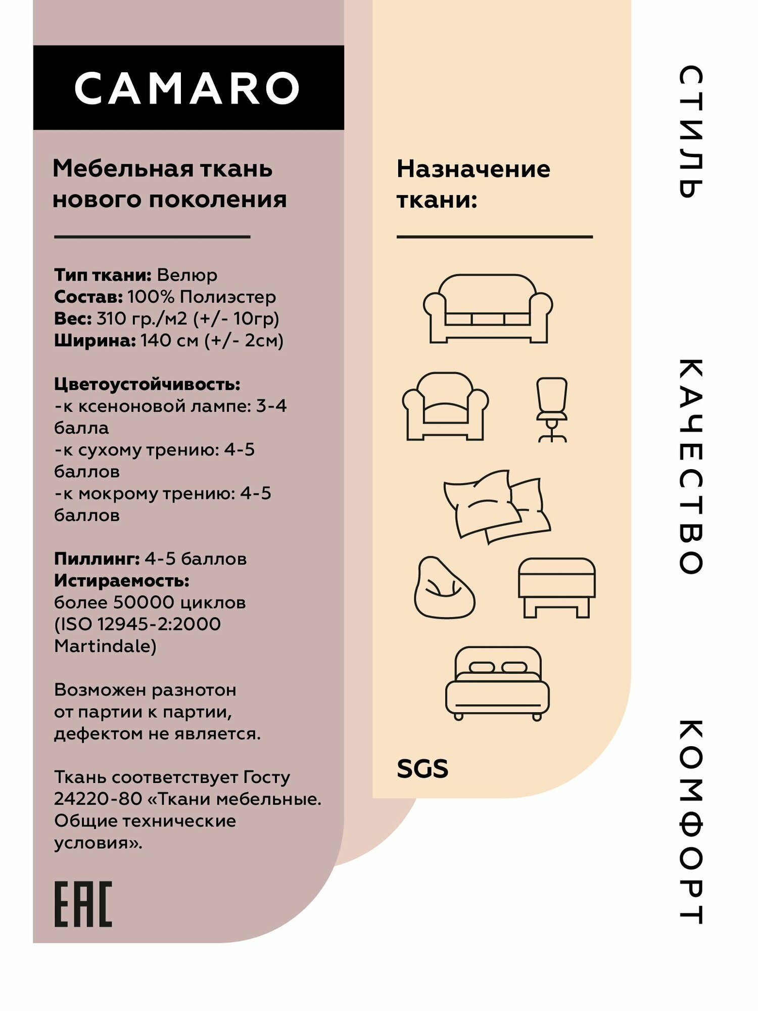 | Съемный чехол | есть |