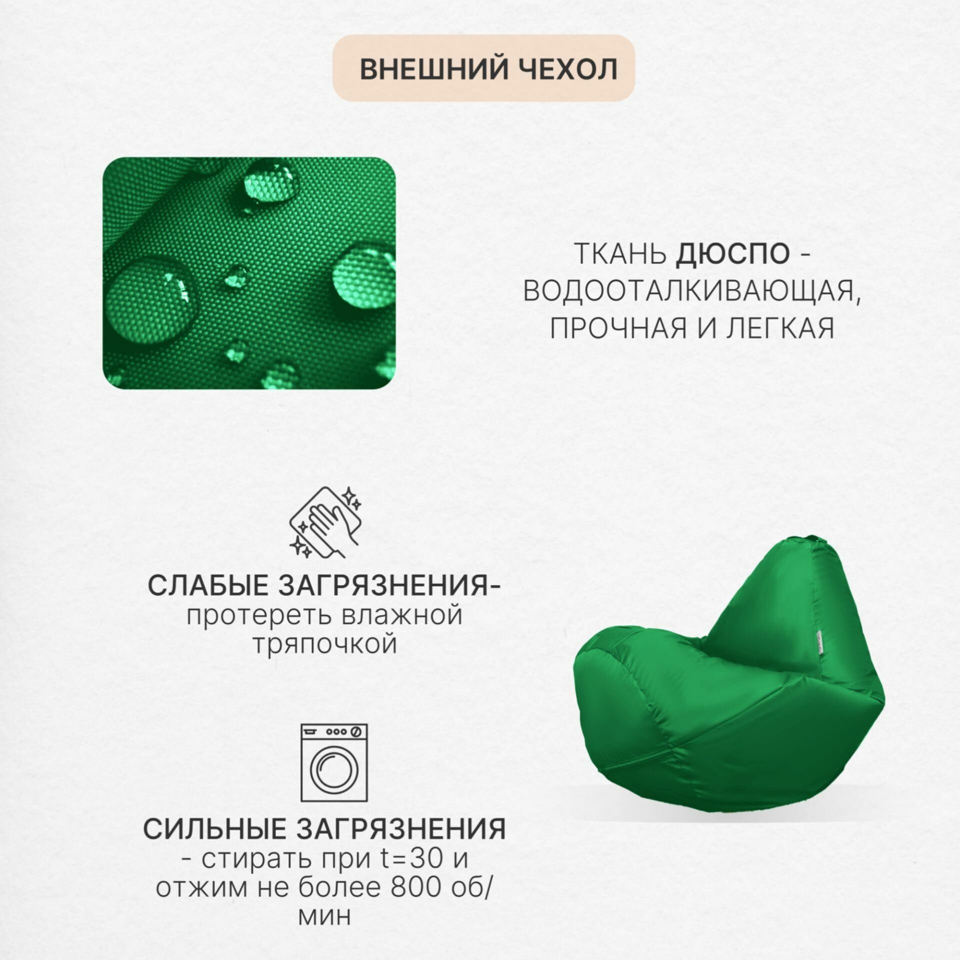 Кресло мешок Груша 2XL зеленый Дюспо