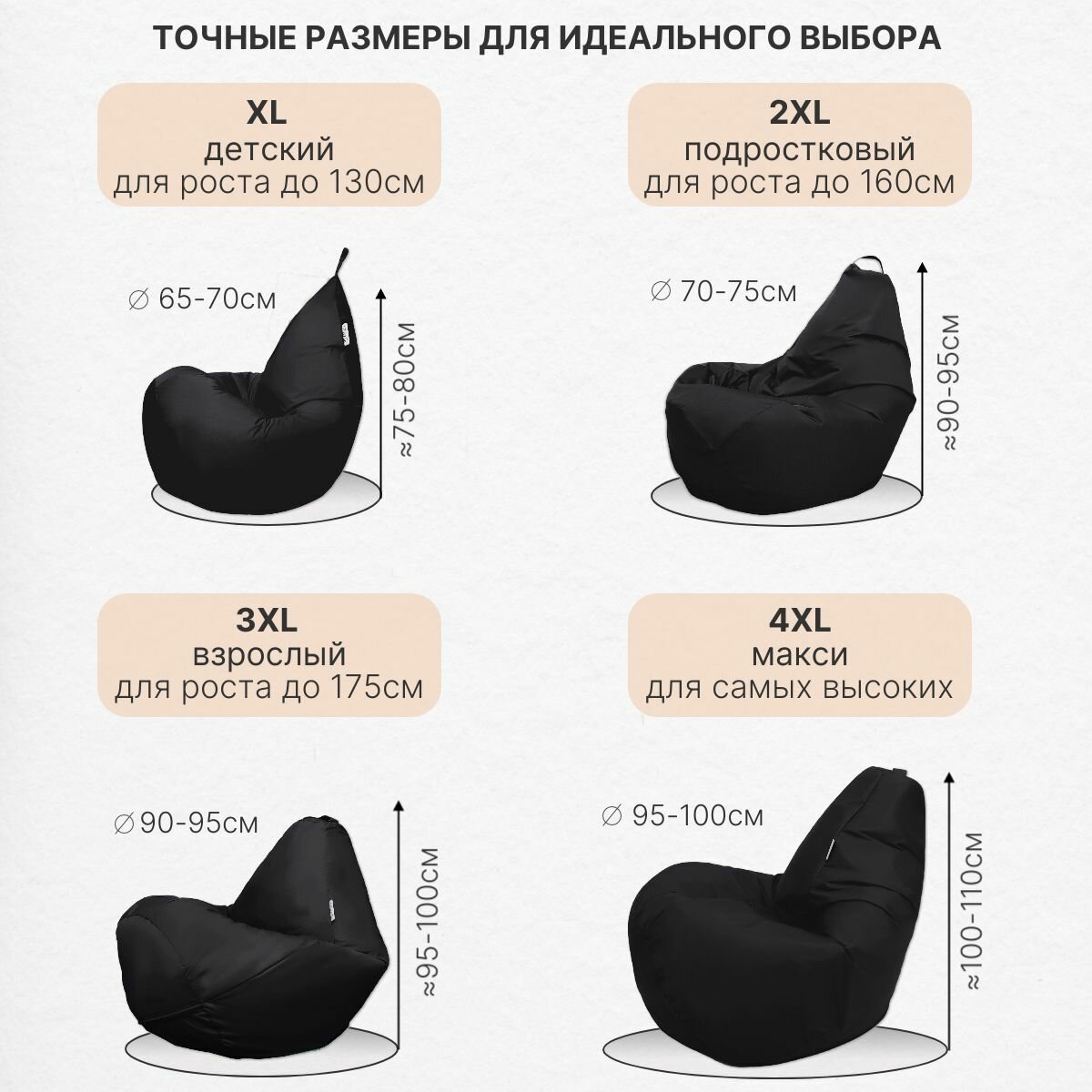 Кресло мешок Груша 3XL черный Дюспо