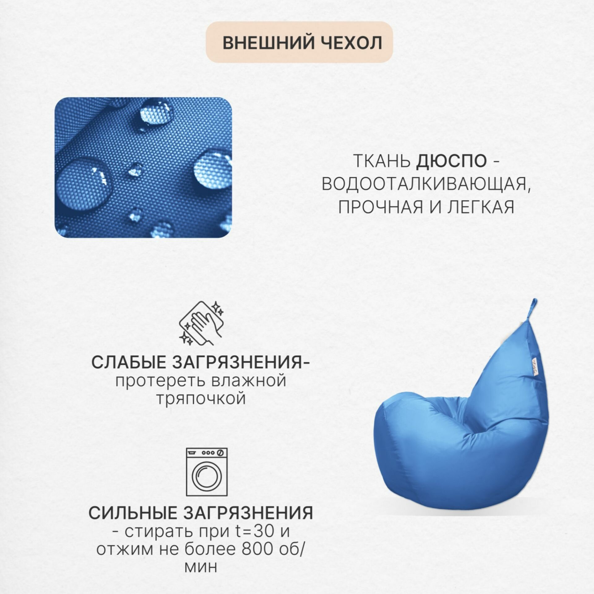 Кресло мешок Груша 2XL голубой Дюспо