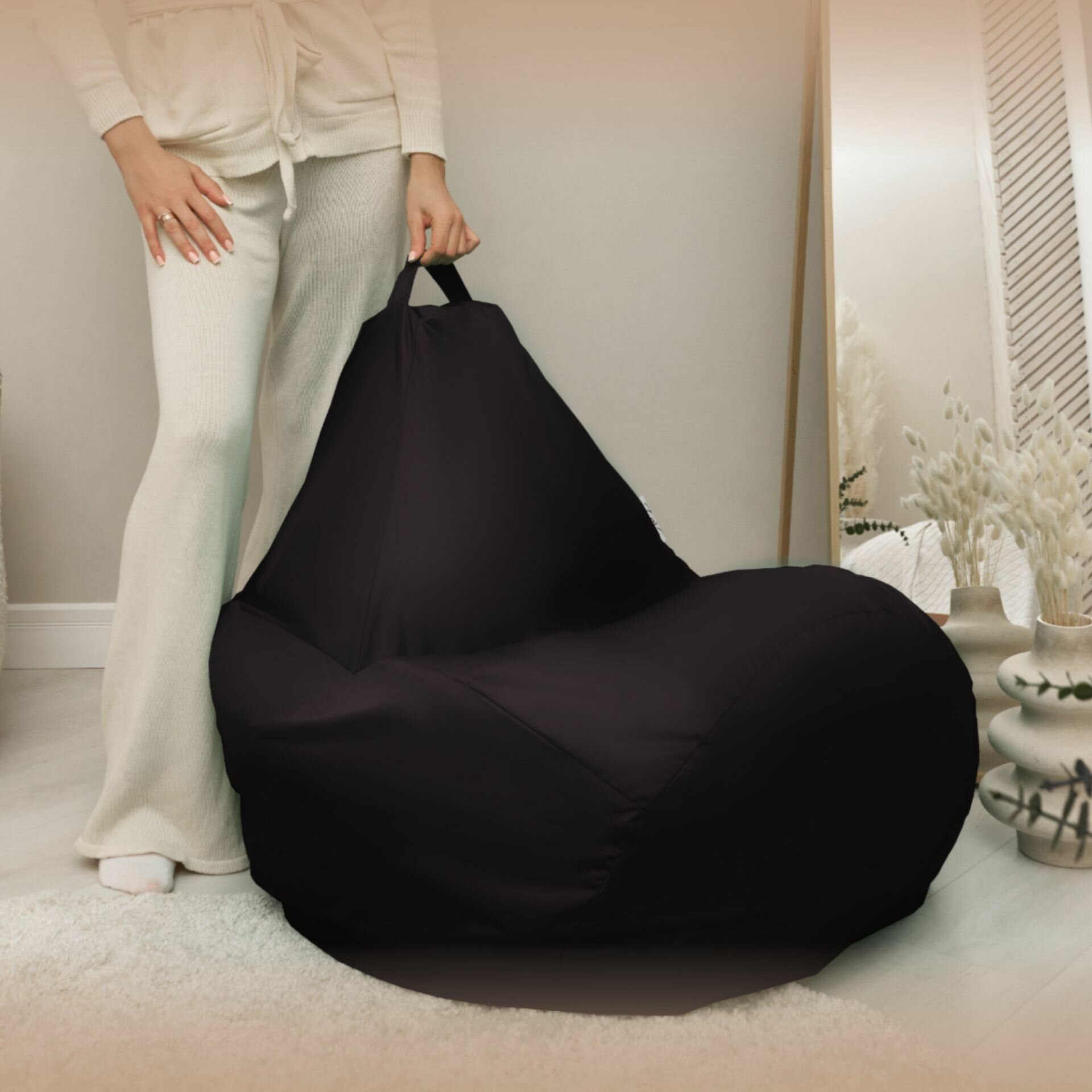 Кресло-мешок Пуффбери «Босс», размер большой, Эко-кожа и велюр Черный