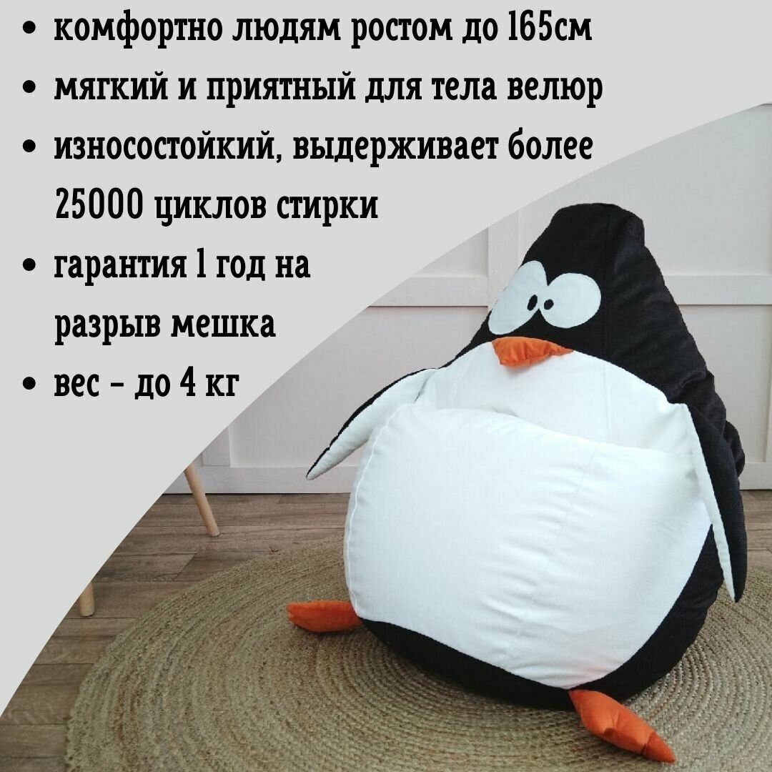 Кресло-мешок KresloGrusha.RML Пингвин Груша Игрушка Велюр натуральный Размер XXXXXL