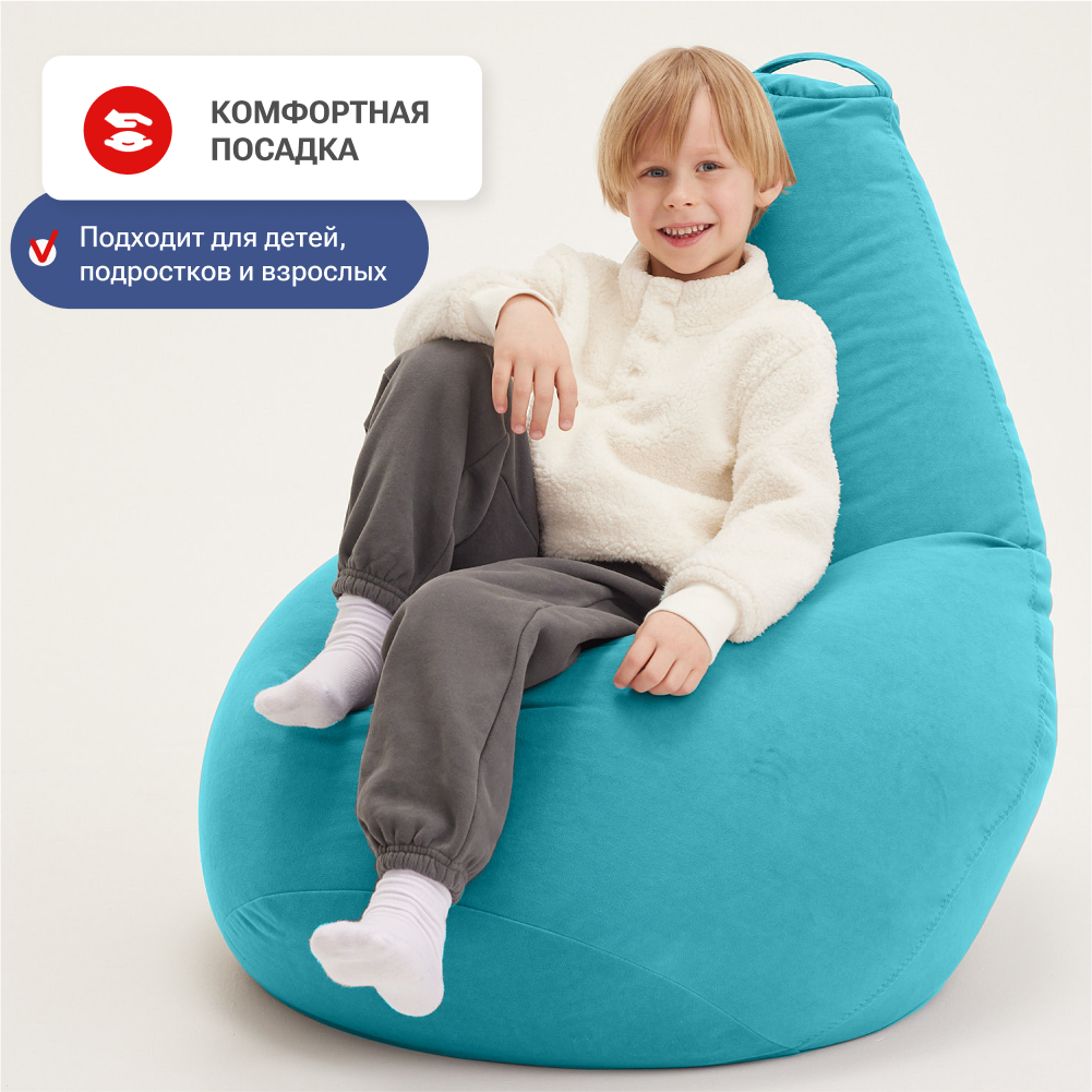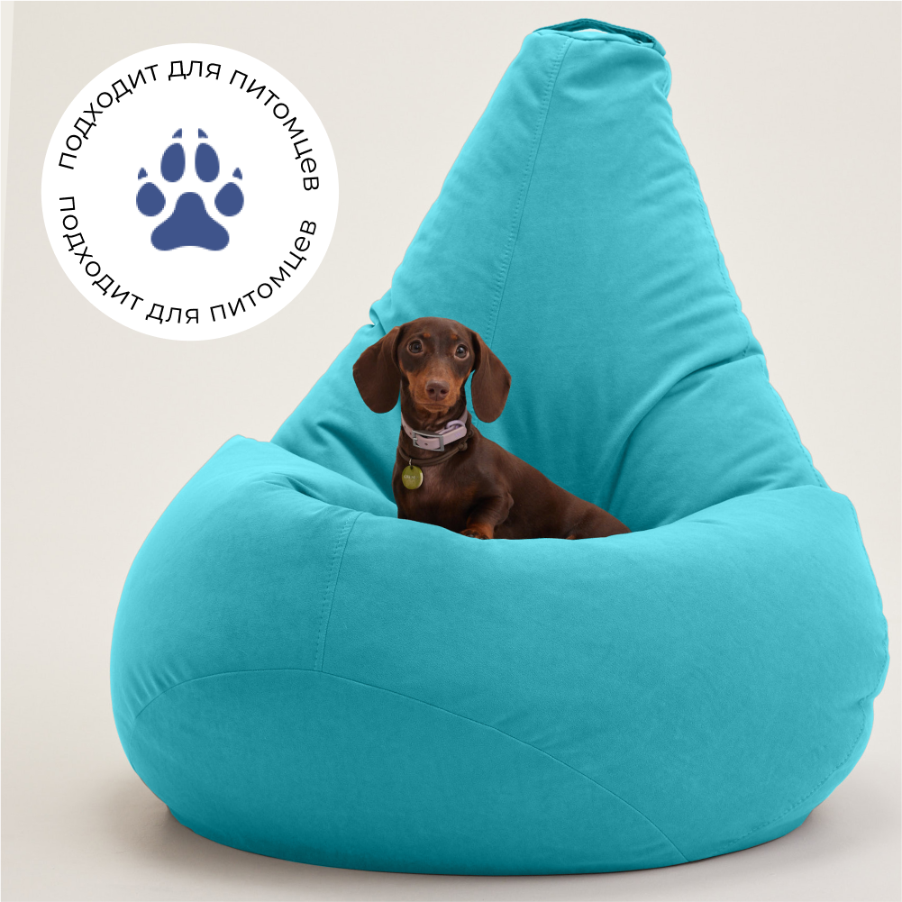 Кресло-мешок груша Bean Joy, размер ХXL, мебельный велюр, глубокая бирюза