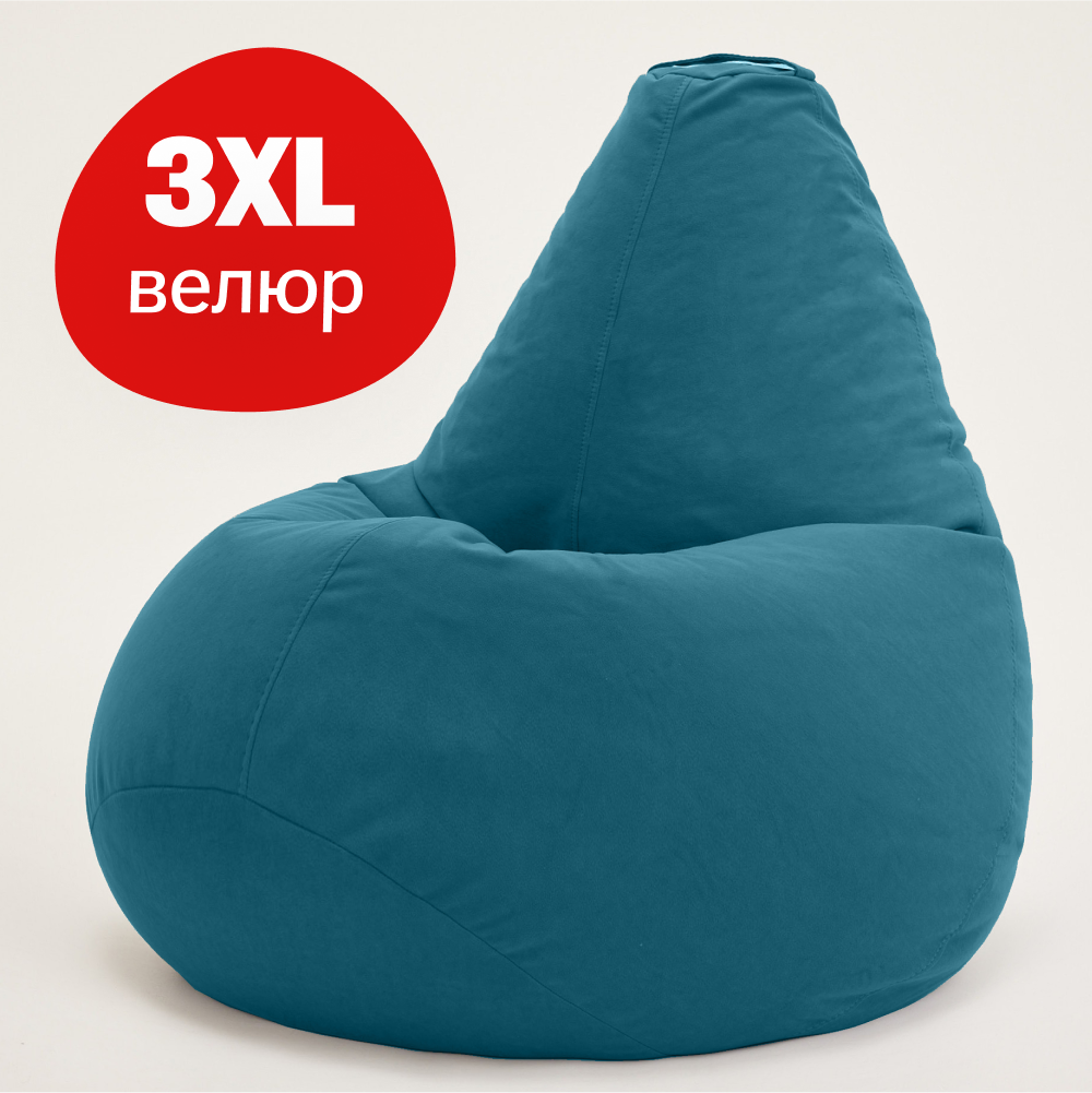 Кресло-мешок груша Bean Joy, размер ХXL, мебельный велюр, глубокая бирюза